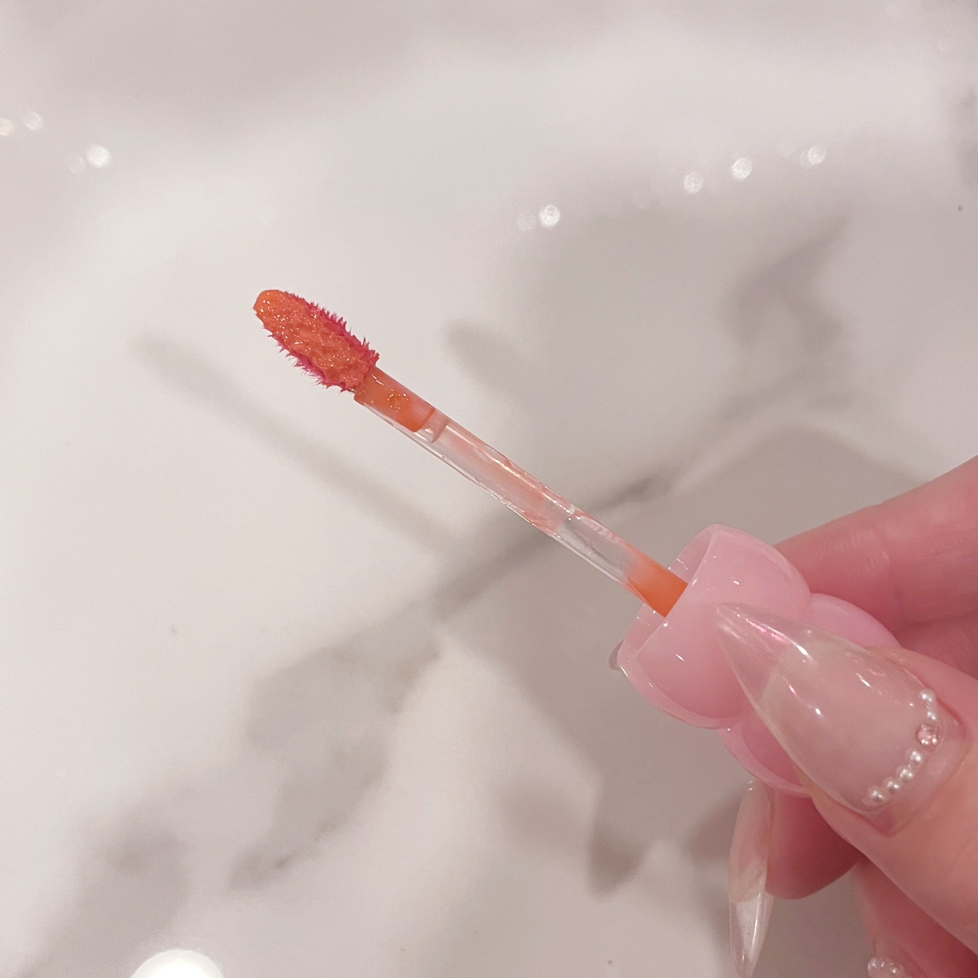 色味ドストライクで可愛い 塗った瞬間ふっくらツヤツヤで可愛い パケも可愛い だけど色持ちがとにかく悪い🥺 普段からティント愛用してる人には向いてない。短時間のおでかけ用。