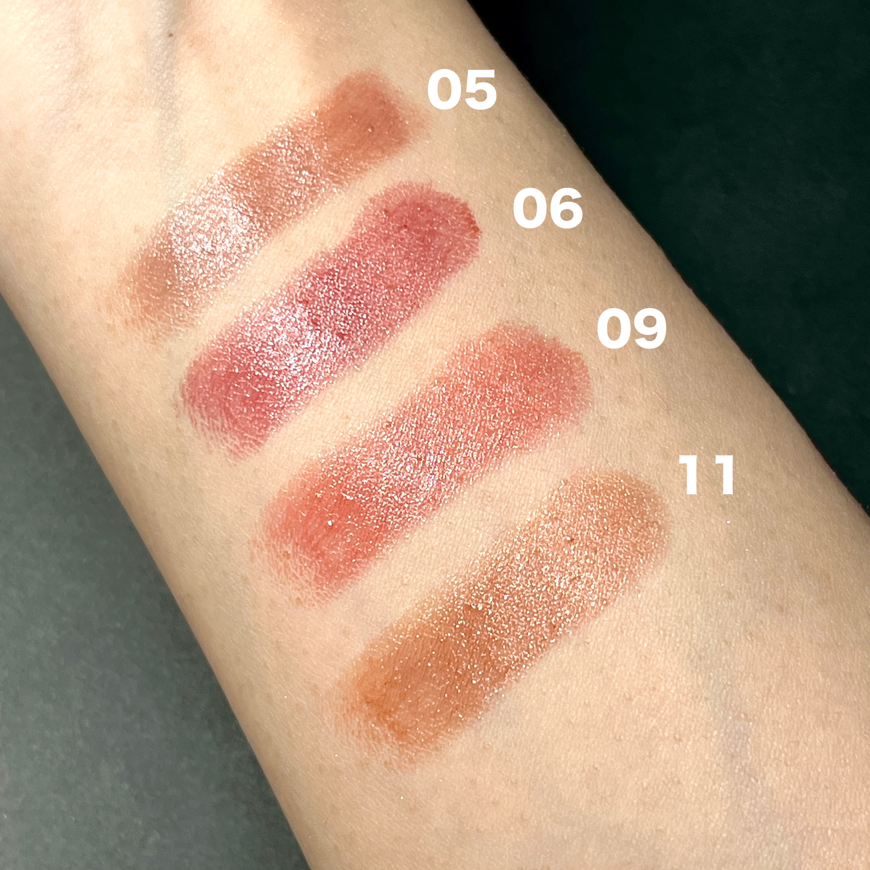 - <01 欲望の塊> テトライソステアリン酸ジペンタエリスリチル、トリ(カプリル酸/カプリン酸)グリセリル、オクチルドデカノール、ラウロイルグルタミン酸ジ(フィトステリル/オクチルドデシル)、ビスアルキル(C16-18)グリセリルウンデシルジメチコン、イソノナン酸イソトリデシル、水添ポリイソブテン、ラウロイルグルタミン酸ジ(オクチルドデシル/フィトステリル/ベヘニル)、パラフィン、合成ワックス、ダイマージリノール酸(フィトステリル/イソステアリル/セチル/ステアリル/ベヘニル)、マイクロクリスタリンワックス、水添マイクロクリスタリンワックス、ヒドロキシステアリン酸エチルヘキシル、トコフェロール、ホホバ種子油、オリーブ果実油、アーモンド油、(エチレン/プロピレン)コポリマー、ポリエチレン、ジメチコン、(+/-)(チタン/酸化チタン)焼結物、マイカ、ラウロイルアスパラギン酸Na、ラウロイルリシン、塩化亜鉛、酸化チタン、酸化鉄、水酸化Al、硫酸Ba、トリイソステアリン酸イソプロピルチタン、酸化スズ、ホウケイ酸(Ca/Al)、合成フルオロフロゴパイト、黄4、黄5、赤104(1)、赤201、赤202 <02 ピンクバナナ> テトライソステアリン酸ジペンタエリスリチル、トリ(カプリル酸/カプリン酸)グリセリル、オクチルドデカノール、ラウロイルグルタミン酸ジ(フィトステリル/オクチルドデシル)、ビスアルキル(C16-18)グリセリルウンデシルジメチコン、イソノナン酸イソトリデシル、水添ポリイソブテン、ラウロイルグルタミン酸ジ(オクチルドデシル/フィトステリル/ベヘニル)、パラフィン、合成ワックス、ダイマージリノール酸(フィトステリル/イソステアリル/セチル/ステアリル/ベヘニル)、マイクロクリスタリンワックス、水添マイクロクリスタリンワックス、ヒドロキシステアリン酸エチルヘキシル、トコフェロール、ホホバ種子油、オリーブ果実油、アーモンド油、(エチレン/プロピレン)コポリマー、ポリエチレン、ジメチコン、(+/-)(チタン/酸化チタン)焼結物、マイカ、ラウロイルアスパラギン酸Na、ラウロイルリシン、塩化亜鉛、酸化チタン、酸化鉄、水酸化Al、硫酸Ba、トリイソステアリン酸イソプロピルチタン、酸化スズ、ホウケイ酸(Ca/Al)、合成フルオロフロゴパイト、黄4、黄5、赤104(1)、赤201、赤202 <03 陽炎> テトライソステアリン酸ジペンタエリスリチル、トリ(カプリル酸/カプリン酸)グリセリル、オクチルドデカノール、ラウロイルグルタミン酸ジ(フィトステリル/オクチルドデシル)、ビスアルキル(C16-18)グリセリルウンデシルジメチコン、イソノナン酸イソトリデシル、水添ポリイソブテン、ラウロイルグルタミン酸ジ(オクチルドデシル/フィトステリル/ベヘニル)、パラフィン、合成ワックス、ダイマージリノール酸(フィトステリル/イソステアリル/セチル/ステアリル/ベヘニル)、マイクロクリスタリンワックス、水添マイクロクリスタリンワックス、ヒドロキシステアリン酸エチルヘキシル、トコフェロール、ホホバ種子油、オリーブ果実油、アーモンド油、(エチレン/プロピレン)コポリマー、ポリエチレン、ジメチコン、(+/-)(チタン/酸化チタン)焼結物、マイカ、ラウロイルアスパラギン酸Na、ラウロイルリシン、塩化亜鉛、酸化チタン、酸化鉄、水酸化Al、硫酸Ba、トリイソステアリン酸イソプロピルチタン、酸化スズ、ホウケイ酸(Ca/Al)、合成フルオロフロゴパイト、黄4、黄5、赤104(1)、赤201、赤202 <04 パンプキンワイン> テトライソステアリン酸ジペンタエリスリチル、トリ(カプリル酸/カプリン酸)グリセリル、オクチルドデカノール、ラウロイルグルタミン酸ジ(フィトステリル/オクチルドデシル)、ビスアルキル(C16-18)グリセリルウンデシルジメチコン、イソノナン酸イソトリデシル、水添ポリイソブテン、ラウロイルグルタミン酸ジ(オクチルドデシル/フィトステリル/ベヘニル)、パラフィン、合成ワックス、ダイマージリノール酸(フィトステリル/イソステアリル/セチル/ステアリル/ベヘニル)、マイクロクリスタリンワックス、水添マイクロクリスタリンワックス、ヒドロキシステアリン酸エチルヘキシル、トコフェロール、ホホバ種子油、オリーブ果実油、アーモンド油、(エチレン/プロピレン)コポリマー、ポリエチレン、ジメチコン、(+/-)(チタン/酸化チタン)焼結物、マイカ、ラウロイルアスパラギン酸Na、ラウロイルリシン、塩化亜鉛、酸化チタン、酸化鉄、水酸化Al、硫酸Ba、トリイソステアリン酸イソプロピルチタン、酸化スズ、ホウケイ酸(Ca/Al)、合成フルオロフロゴパイト、黄4、黄5、赤104(1)、赤201、赤202 <05 ダークフィグ> テトライソステアリン酸ジペンタエリスリチル、トリ(カプリル酸/カプリン酸)グリセリル、オクチルドデカノール、ラウロイルグルタミン酸ジ(フィトステリル/オクチルドデシル)、ビスアルキル(C16-18)グリセリルウンデシルジメチコン、イソノナン酸イソトリデシル、水添ポリイソブテン、ラウロイルグルタミン酸ジ(オクチルドデシル/フィトステリル/ベヘニル)、