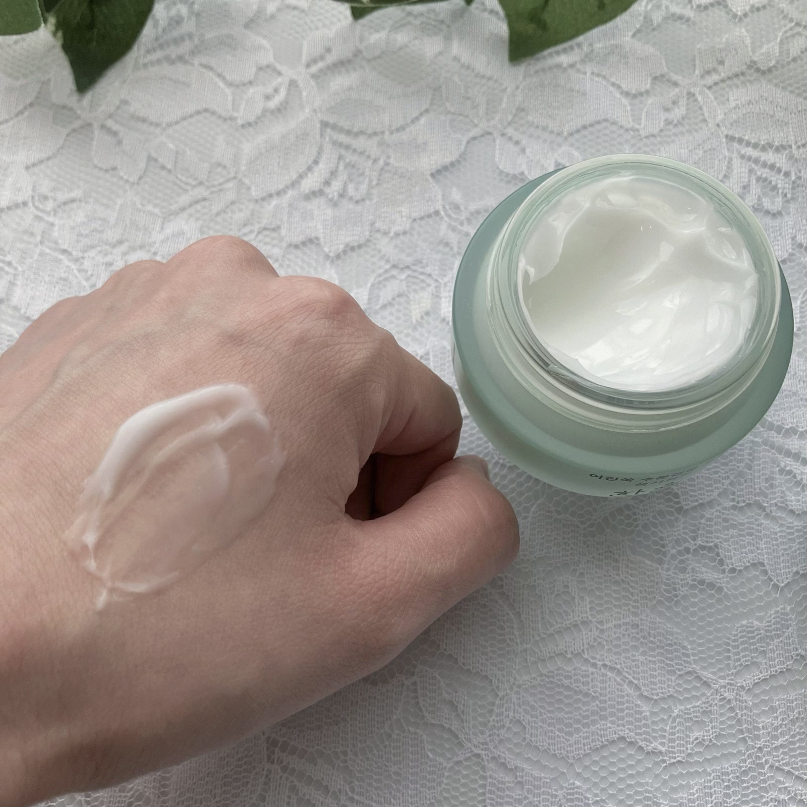 ヨモギシカが保湿力抜群だそうで、肌が潤ってみずみずしい肌に🩷 クリームは重めのテクスチャで、でも伸びがいいのでコスパもよし☺️👍 ニキビ肌にも安心な低刺激クリームなので、ぬっても滲みないし快適です✨