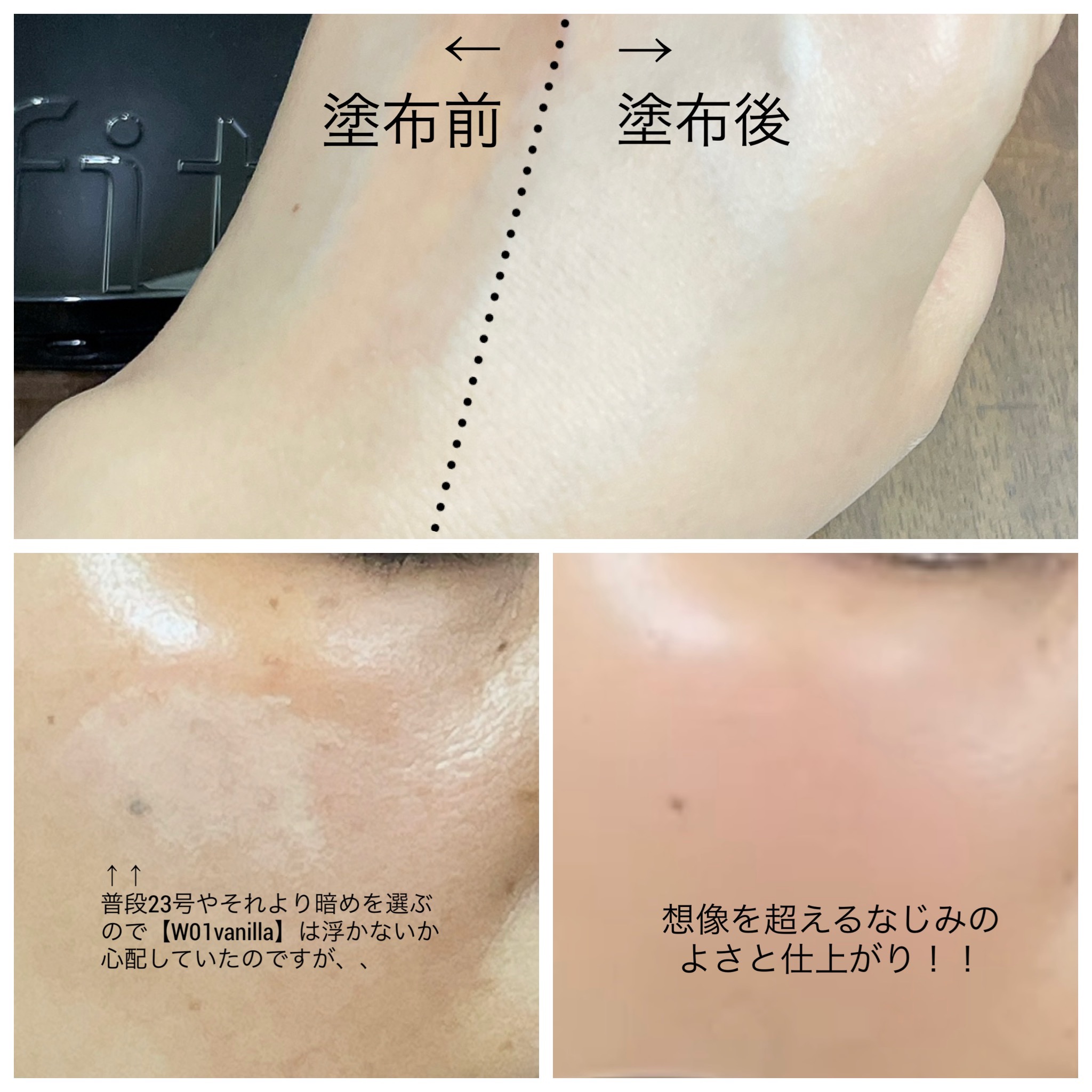 - <C01 ポースリン(Porcelain)> 水、酸化チタン、シクロペンタシロキサン、ホモサレート、BG、カプリリルメチコン、フェニルベンズイミダゾールスルホン酸、トリメチルシロキシケイ酸、DPG、ジエチルアミノヒドロキシベンゾイル安息香酸ヘキシル、ナイアシンアミド、セチルPEG/PPG-10/1ジメチコン、ラウリルPEG-8ジメチコン、トロメタミン、プロパンジオール、硫酸Mg、PEG-10ジメチコン、フェニルトリメチコン、メドウフォーム油、マカデミア種子油、ドクダミエキス、セージ葉エキス、スベリヒユエキス、ヒアルロン酸、加水分解ヒアルロン酸、ヒアルロン酸Na、ラウロイルリシン、アデノシン、カプリル酸グリセリル、エチルヘキシルグリセリン、ジメチコン、酸化鉄、ポリメタクリル酸メチル、ジステアルジモニウムヘクトライト、トリメリト酸トリトリデシル、(VP/ヘキサデセン)コポリマー、水酸化Al、メタクリル酸メチルクロスポリマー、シリカ、マイカ、ポリシリコーン-11、トリエトキシカプリリルシラン、ステアリン酸、フェニルプロピルジメチルシロキシケイ酸、アルミナ、エチレンジアミンジコハク酸3Na、水添レシチン、(トリメチルシロキシケイ酸/ジメチコノール)クロスポリマー、テトラ(ジ-t-ブチルヒドロキシヒドロケイヒ酸)ペンタエリスリチル、香料 <W01 バニラ(Vanilla)> 水、酸化チタン、シクロペンタシロキサン、ホモサレート、BG、カプリリルメチコン、フェニルベンズイミダゾールスルホン酸、トリメチルシロキシケイ酸、DPG、ジエチルアミノヒドロキシベンゾイル安息香酸ヘキシル、ナイアシンアミド、セチルPEG/PPG-10/1ジメチコン、ラウリルPEG-8ジメチコン、トロメタミン、プロパンジオール、硫酸Mg、PEG-10ジメチコン、フェニルトリメチコン、メドウフォーム油、マカデミア種子油、ドクダミエキス、セージ葉エキス、スベリヒユエキス、ヒアルロン酸、加水分解ヒアルロン酸、ヒアルロン酸Na、ラウロイルリシン、アデノシン、カプリル酸グリセリル、エチルヘキシルグリセリン、ジメチコン、酸化鉄、ポリメタクリル酸メチル、ジステアルジモニウムヘクトライト、トリメリト酸トリトリデシル、(VP/ヘキサデセン)コポリマー、水酸化Al、メタクリル酸メチルクロスポリマー、シリカ、マイカ、ポリシリコーン-11、トリエトキシカプリリルシラン、ステアリン酸、フェニルプロピルジメチルシロキシケイ酸、アルミナ、エチレンジアミンジコハク酸3Na、水添レシチン、(トリメチルシロキシケイ酸/ジメチコノール)クロスポリマー、テトラ(ジ-t-ブチルヒドロキシヒドロケイヒ酸)ペンタエリスリチル、香料 <N1.5 スウェード(Suede)> 水、酸化チタン、シクロペンタシロキサン、ホモサレート、BG、カプリリルメチコン、フェニルベンズイミダゾールスルホン酸、トリメチルシロキシケイ酸、DPG、ジエチルアミノヒドロキシベンゾイル安息香酸ヘキシル、ナイアシンアミド、セチルPEG/PPG-10/1ジメチコン、ラウリルPEG-8ジメチコン、トロメタミン、プロパンジオール、酸化鉄、硫酸Mg、PEG-10ジメチコン、フェニルトリメチコン、メドウフォーム油、マカデミア種子油、ドクダミエキス、セージ葉エキス、スベリヒユエキス、ヒアルロン酸、加水分解ヒアルロン酸、ヒアルロン酸Na、ラウロイルリシン、アデノシン、カプリル酸グリセリル、エチルヘキシルグリセリン、ジメチコン、ポリメタクリル酸メチル、ジステアルジモニウムヘクトライト、トリメリト酸トリトリデシル、(VP/ヘキサデセン)コポリマー、水酸化Al、メタクリル酸メチルクロスポリマー、シリカ、マイカ、ポリシリコーン-11、トリエトキシカプリリルシラン、ステアリン酸、フェニルプロピルジメチルシロキシケイ酸、アルミナ、エチレンジアミンジコハク酸3Na、水添レシチン、(トリメチルシロキシケイ酸/ジメチコノール)クロスポリマー、テトラ(ジ-t-ブチルヒドロキシヒドロケイヒ酸)ペンタエリスリチル、香料