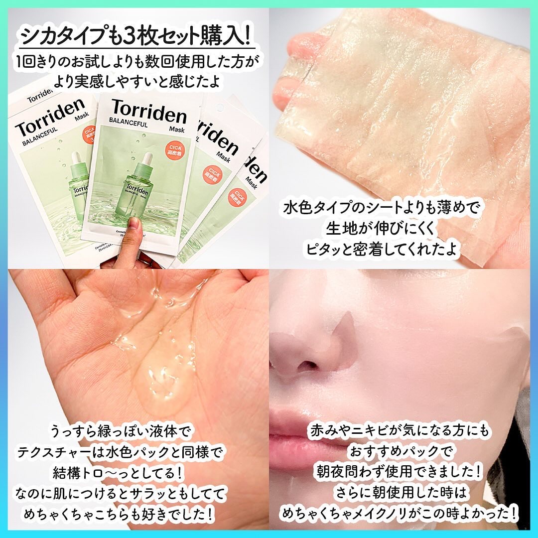 🌥️✅Torriden・ダイブインマスク・バランスフルシカマスク・セルメイジングビタCブライトニングマスクトリデンの人気パック3種、どれにするー?🐥💭トリデンといえば水色の〖ダイブインシリーズ〗が有名だと思うんだけど緑色の〖バランスフルシカシ...