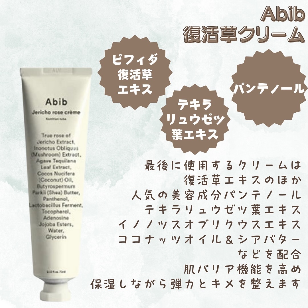 Abib復活草シリーズ🌱大好きな復活草シリーズをいただきました!•復活草PHAトナースキンブースター肌のキメ整える•保湿ケア濃密なとろみのあるテクスチャーしっとりとした塗り心地で乾燥肌や秋冬にぴったりな使い心地•復活草ビフィダセラムファーミン...