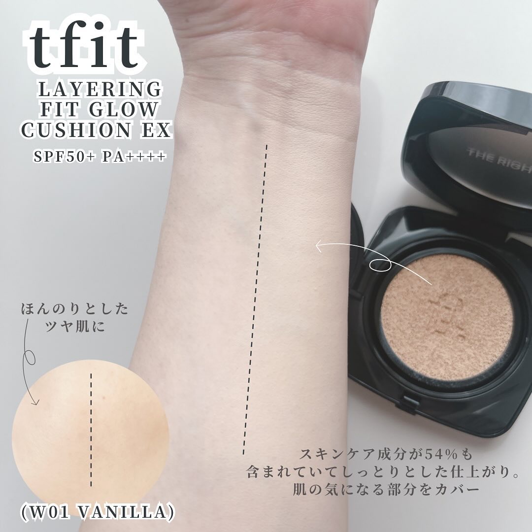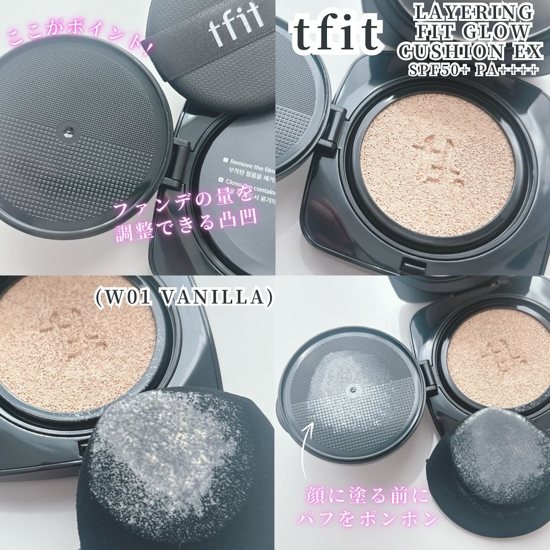 @tfit.korea の素肌感クッションが優秀だった✨ アミノ酸コーティングパウダーが配合されたファンデが厚塗り感なく肌にフィットしてくれます🫧 使用感はとにかく軽くファンデの塗ってます感が無かったのが感動🥹 しっかり肌の赤みやくすみはカバーしてくれるのにこの塗り心地はリピート確定◎ 何気に嬉しいポイントがクッションファンデのパフの中では厚めでもちもちというよりふわふわ感がとても良いのでよりファンデの厚塗り感を軽減してくれてる気がする✨
