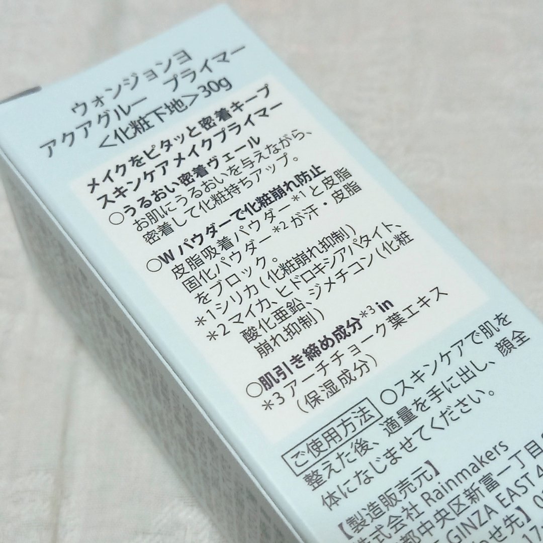ウォンジョンヨ アクアグルー プライマーお肌にうるおいを与えながら1日中メイクをしっかりキープ。新感覚メイクキーププライマー◡̈UVカット効果、毛穴補正効果やトーンアップ効果などはありません。ジェル状のプライマーでペタペタする使用感。伸ばして...