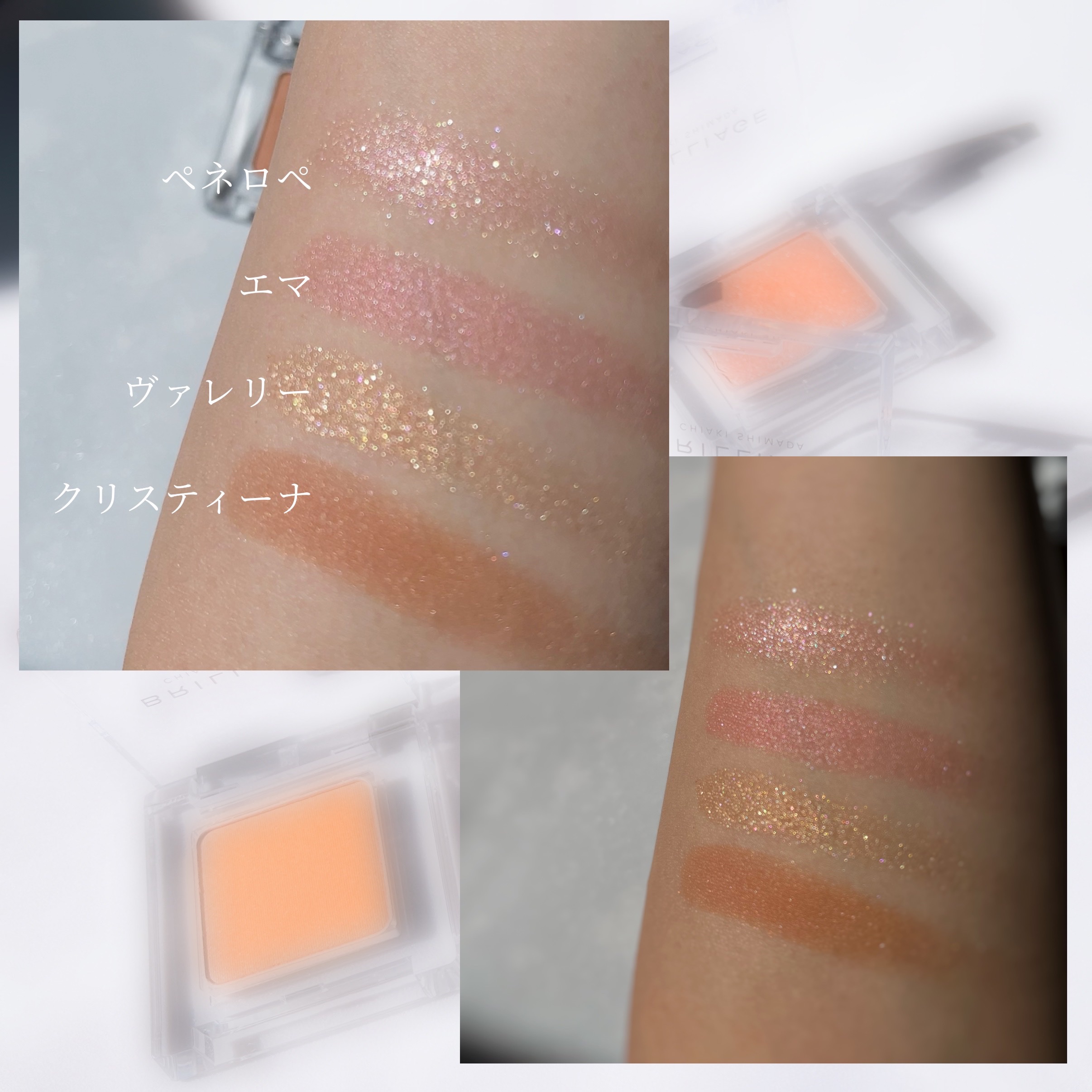 - <A03-レイラ> ラウロイルリシン、(ジメチコン/ビニルジメチコン)クロスポリマー、エチルヘキシルグリセリン、ペンチレングリコール、(+/-)ジメチコン、酸化チタン、酸化鉄、シリカ、タルク、マイカ、アルミナ、ホウケイ酸(Ca/Al)、金、銀、合成金雲母、酸化スズ、水酸化Al、赤202 <A04-グレイス> ラウロイルリシン、(ジメチコン/ビニルジメチコン)クロスポリマー、エチルヘキシルグリセリン、ペンチレングリコール、(+/-)ジメチコン、酸化チタン、酸化鉄、シリカ、タルク、マイカ、アルミナ、ホウケイ酸(Ca/Al)、金、銀、合成金雲母、酸化スズ、水酸化Al、赤202 <B03-リア> ラウロイルリシン、(ジメチコン/ビニルジメチコン)クロスポリマー、エチルヘキシルグリセリン、ペンチレングリコール、(+/-)ジメチコン、酸化チタン、酸化鉄、シリカ、タルク、マイカ、アルミナ、ホウケイ酸(Ca/Al)、金、銀、合成金雲母、酸化スズ、水酸化Al、赤202 <F03-エレノア> ラウロイルリシン、トリエチルヘキサノイン、ポリメチルシルセスキオキサン、エチルヘキシルグリセリン、イソステアリン酸水添ヒマシ油、セスキイソステアリン酸ソルビタン、リンゴ酸ジイソステアリル、ペンチレングリコール、(+/-)ジメチコン、トリエトキシカプリリルシラン、酸化チタン、酸化鉄、シリカ、タルク、マイカ、ホウケイ酸(Ca/チタン)、合成金雲母、酸化スズ、水酸化Al、赤226 <F04-ヴィクトリア> ラウロイルリシン、トリエチルヘキサノイン、ポリメチルシルセスキオキサン、エチルヘキシルグリセリン、イソステアリン酸水添ヒマシ油、セスキイソステアリン酸ソルビタン、リンゴ酸ジイソステアリル、ペンチレングリコール、(+/-)ジメチコン、トリエトキシカプリリルシラン、酸化チタン、酸化鉄、シリカ、タルク、マイカ、ホウケイ酸(Ca/チタン)、合成金雲母、酸化スズ、水酸化Al、赤226 <G01-ベラ> ラウロイルリシン、(ジメチコン/ビニルジメチコン)クロスポリマー、エチルヘキシルグリセリン、ペンチレングリコール、(+/-)ジメチコン、酸化チタン、酸化鉄、シリカ、タルク、マイカ、アルミナ、ホウケイ酸(Ca/Al)、金、銀、合成金雲母、酸化スズ、水酸化Al、赤202 <B05 ステラ> ラウロイルリシン、(ジメチコン/ビニルジメチコン)クロスポリマー、エチルヘキシルグリセリン、ハイドロゲンジメチコン、ペンチレングリコール、(+/-)ジメチコン、トリエトキシカプリリルシラン、酸化チタン、酸化鉄、シリカ、タルク、マイカ、ホウケイ酸(Ca/Al)、金、銀、合成金雲母、酸化スズ、水酸化Al、赤202、赤226 <B06 エイヴリー> ラウロイルリシン、(ジメチコン/ビニルジメチコン)クロスポリマー、エチルヘキシルグリセリン、ハイドロゲンジメチコン、ペンチレングリコール、(+/-)ジメチコン、トリエトキシカプリリルシラン、酸化チタン、酸化鉄、シリカ、タルク、マイカ、ホウケイ酸(Ca/Al)、金、銀、合成金雲母、酸化スズ、水酸化Al、赤202、赤226 <F05-ノラ> ラウロイルリシン、トリエチルヘキサノイン、ポリメチルシルセスキオキサン、エチルヘキシルグリセリン、イソステアリン酸水添ヒマシ油、セスキイソステアリン酸ソルビタン、リンゴ酸ジイソステアリル、ペンチレングリコール、(+/-)ジミリスチン酸Al、ジメチコン、酸化チタン、酸化鉄、グンジョウ、カオリン、マイカ、合成金雲母 <G02-ナタリー> ラウロイルリシン、(ジメチコン/ビニルジメチコン)クロスポリマー、エチルヘキシルグリセリン、ペンチレングリコール、(+/-)ジメチコン、酸化チタン、酸化鉄、シリカ、マイカ、ホウケイ酸(Ca/Al)、銀、合成金雲母、酸化スズ <S01-アガサ> ラウロイルリシン、シリカ、トリエチルヘキサノイン、ポリメチルシルセスキオキサン、エチルヘキシルグリセリン、イソステアリン酸水添ヒマシ油、ステアロイルグルタミン酸2Na、セスキイソステアリン酸ソルビタン、リンゴ酸ジイソステアリル、ペンチレングリコール、トリエトキシカプリリルシラン、(+/−)ジミリスチン酸Al、ジメチコン、メチコン、酸化チタン、酸化鉄、グンジョウ、カオリン、タルク、マイカ、アルミナ、合成サファイア、合成金雲母、酸化スズ、水酸化Al、赤202、赤226、黄4 <S02-アナベル> ラウロイルリシン、シリカ、トリエチルヘキサノイン、ポリメチルシルセスキオキサン、エチルヘキシルグリセリン、イソステアリン酸水添ヒマシ油、ステアロイルグルタミン酸2Na、セスキイソステアリン酸ソルビタン、リンゴ酸ジイソステアリル、ペンチレングリコール、トリエトキシカプリリルシラン、(+/−)ジミリスチン酸Al、ジメチコン、メチコン、酸化チタン、酸化鉄、グンジョウ、カオリン、タルク、マイカ、アルミナ、合成サファイア、合成金雲母、酸化スズ、水酸化Al、赤202、赤226、黄4