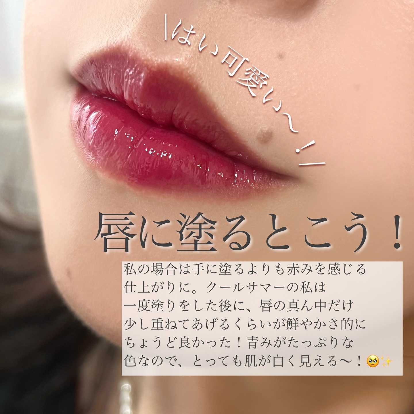 もーーーまずパッケージが可愛すぎるよね😢❤️❤️ 迷いなく全色買ってしまったよ…! 既存のジューシーラスティングティントに比べて ⚪︎サラッとしたリキッド ⚪︎やや薄づきな発色⚪︎艶々? 個人的にはロムアンドでは 最近こそ出るようになったけど ブルベ向きのカラー(特にサマー)でドンピシャが あんまり無いなあと思っていたので、 今回とっっても5〜8番が可愛くて ひじょーーーーーーに!満足しております💪❤️❤️