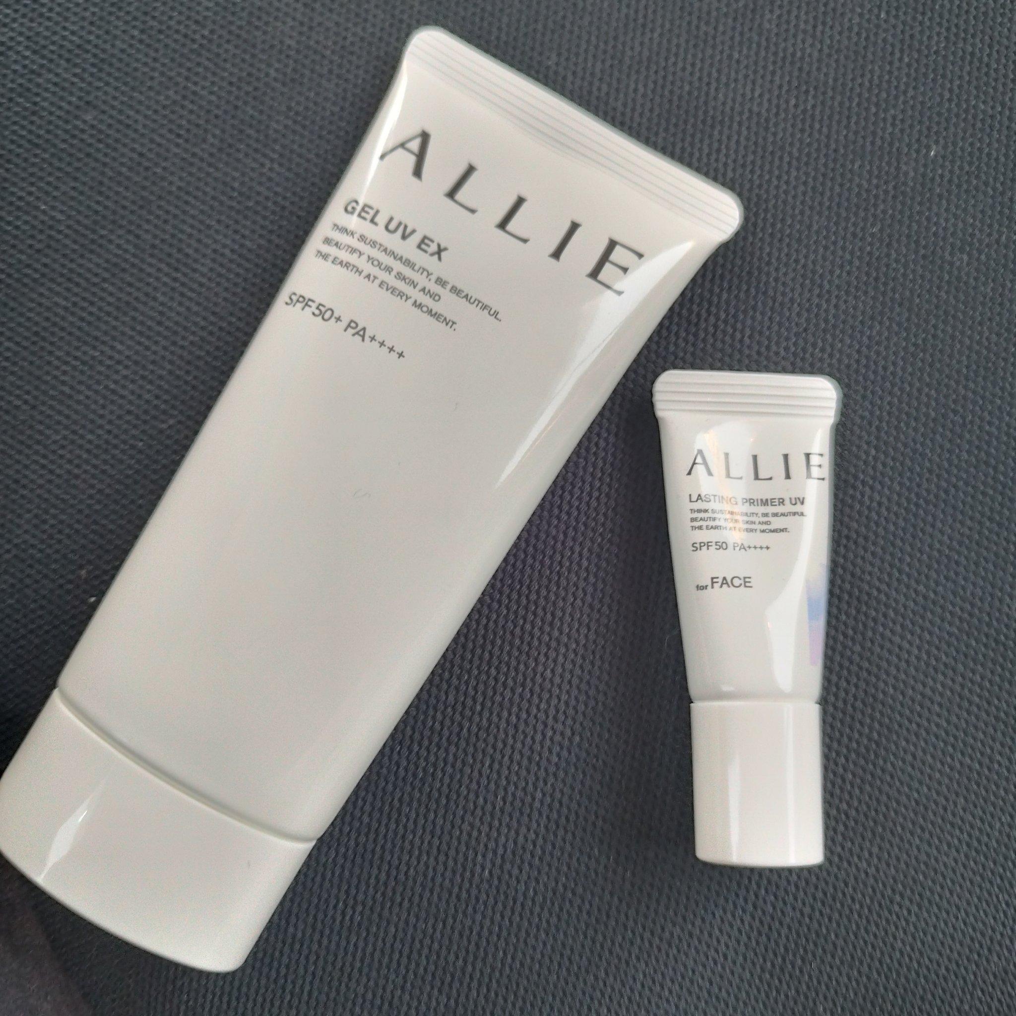 ◯ALLIE限定セットAアリィークロノビューティジェルUVEX90g+ラスティングプライマーUVミニサイズ5g『みずみずしいジェルがすーっとのびて均一に密着水相成分約65%の密着ジェルで、うるおってベタつかずキレイな仕上がりがつづく』♡SPF...