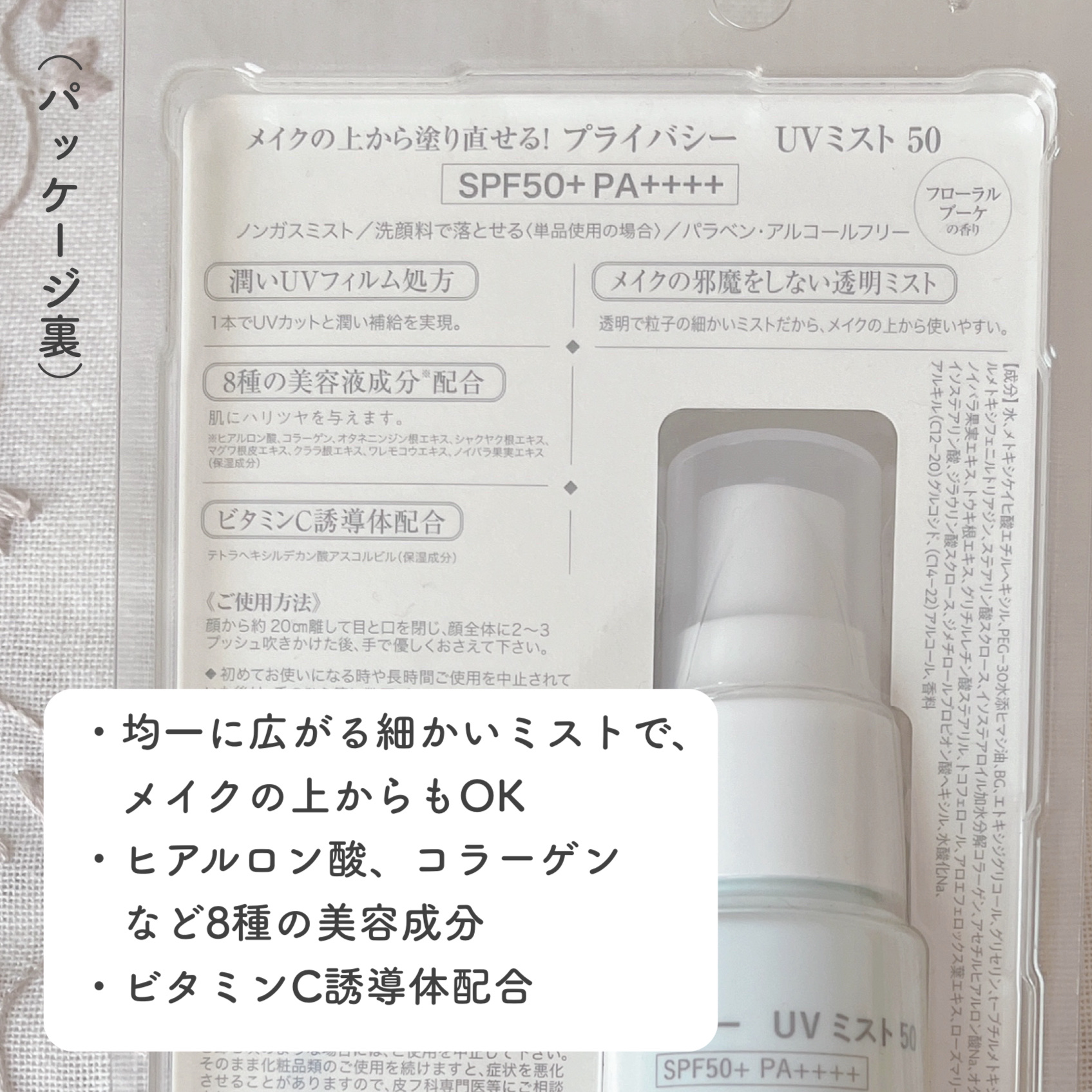 商品詳細情報プライバシー UVミスト50