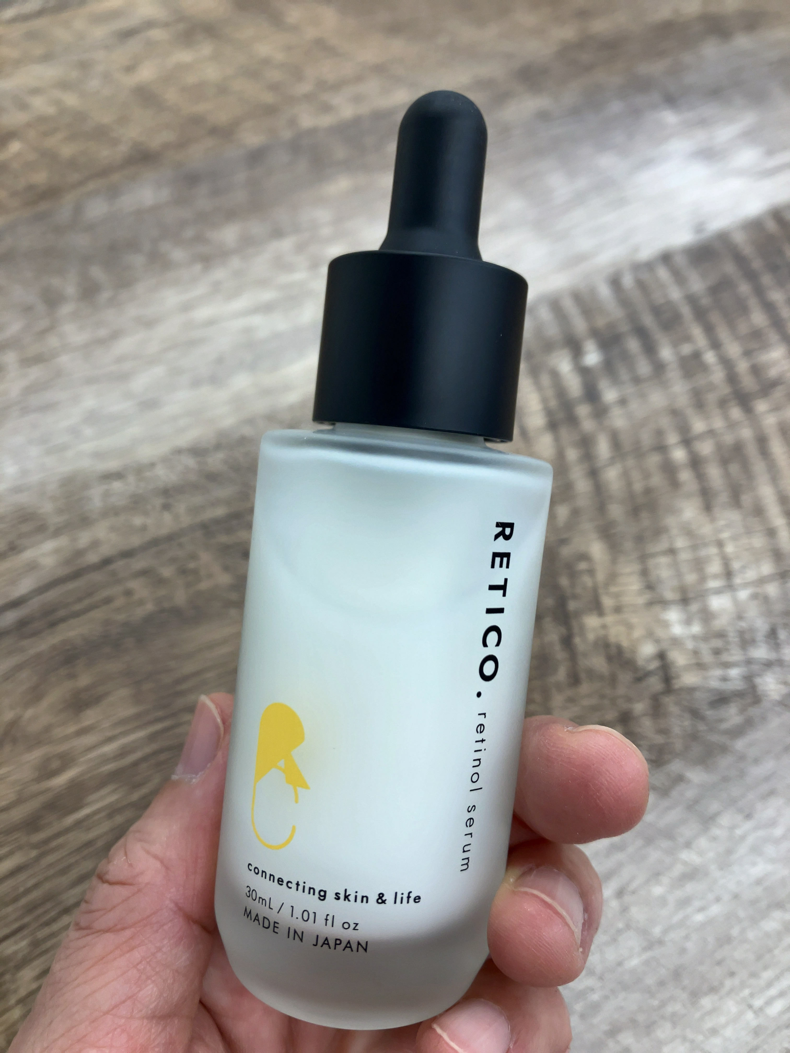 オールインワン美容液として使えてお肌に刺激が少なくレチノール初心者さんでも挑戦しやすい美容液、RETICO.(レチコ)です。 軽めの乳液のような触り心地でお肌に乗せてもベタつかないところが好き。 みずみずしいけどしっかり保湿感がありこれからの季節にもぴったり!