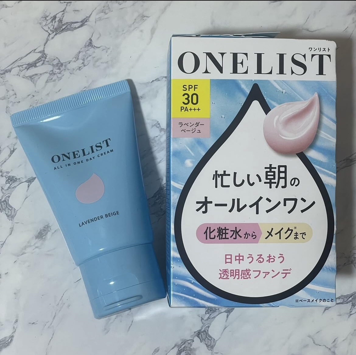 - ※2024年2月9日〜パッケージリニューアル。 忙しい朝は洗顔後にこれだけ!化粧水からベースメイクまでがひとつになった【色つきオールインワンデイクリーム】。 1個で7役【化粧水・美容液・乳液・クリーム・UVカット・化粧下地・ファンデーション】。 カプセル化した美容成分(レチノール、水溶性コラーゲン、加水分解ヒアルロン酸、ビタミンC誘導体、水溶性セラミド)が時間と共に放出され、一日中うるおいを与えます。 ファンデーション成分配合で素肌キレイ見せ。自然なカバー力で崩れてもキレイが続く。 日常紫外線をしっかりカットするSPF30/PA+++。 石けん・洗顔料で落とせます。 無香料・無エチルアルコール・無鉱物オイル・弱酸性・パラベンフリー。 ※2024年3月20日~\ワンリスト ラベンダーベージュ新発売/ ラベンダーベージュのトーンアップ効果を追加した1品7役【化粧水・美容液・乳液・クリーム・UVカット・トーンアップ*化粧下地・ファンデーション】 Amazon限定販売。*メイク効果による