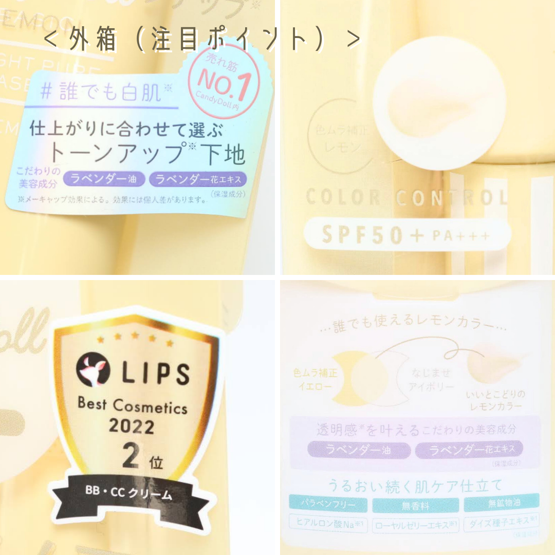☆CandyDoll☆トーンアップUVベースお色はレモン🍋SPF50+PA++++/22g最初にごめんなんだけど!?!前に使っていたCandyDollの黄色下地のリニューアル品だと勝手に思ってたんだけどよく見たら前のモノは『ベースCC』とのこ...