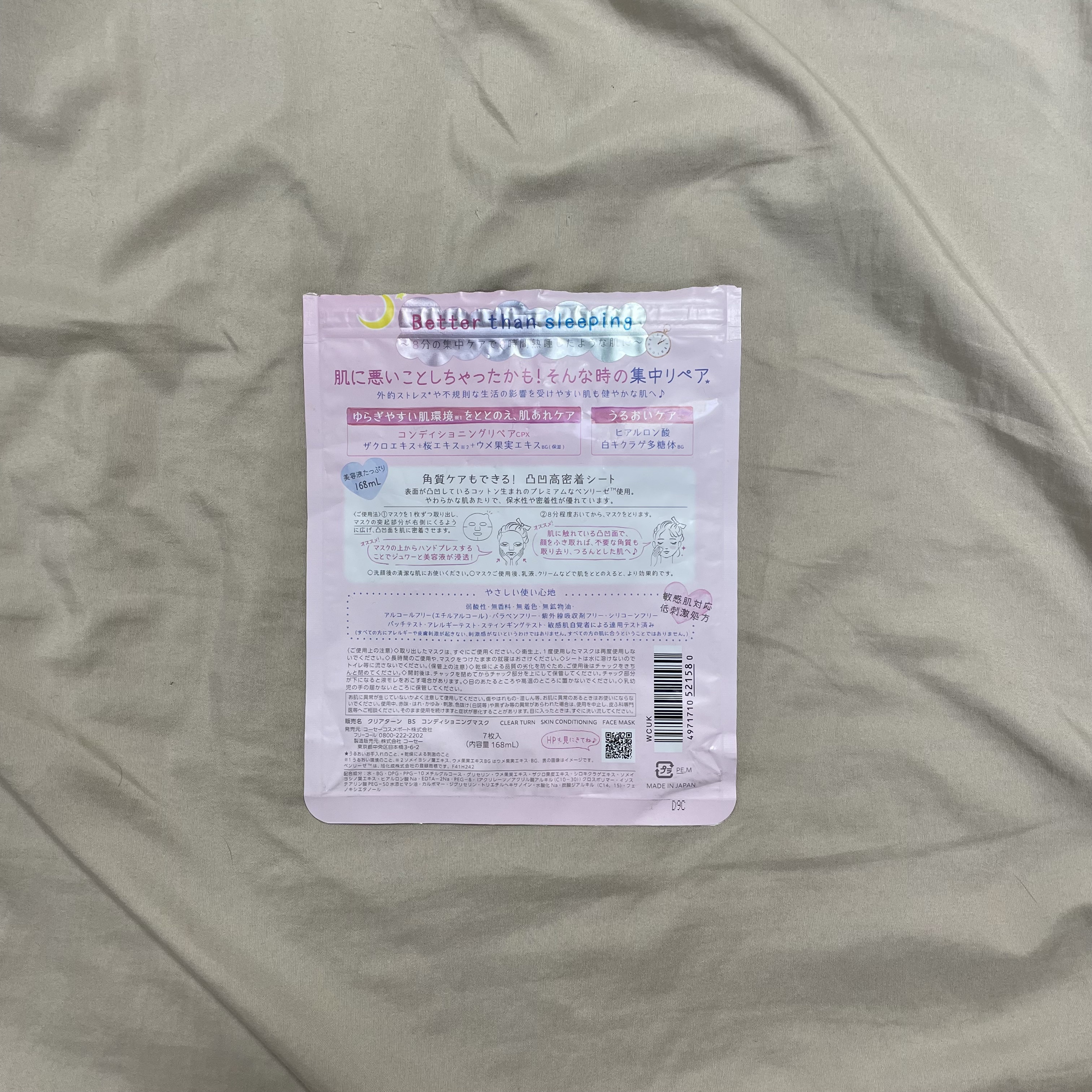 全部使い切ったけど、正直に言うと、うーん…って感じ この金額ならもっといいマスクあるよね…? 使用感大事な私は、このパックの素材がそもそも合わなくて、パックつけた時の気持ちい〜って感じが無いのが残念 唯一キニナルマスクは着け心地割とすきだったんだけど、これをつけてる時だけ何故かTゾーンがめちゃくちゃ乾燥して 鎮静に特化してる分、保湿はイマイチだったのかな、と感じました 絵とか可愛くて買った時はテンション上がるけどリピはないかなあ…