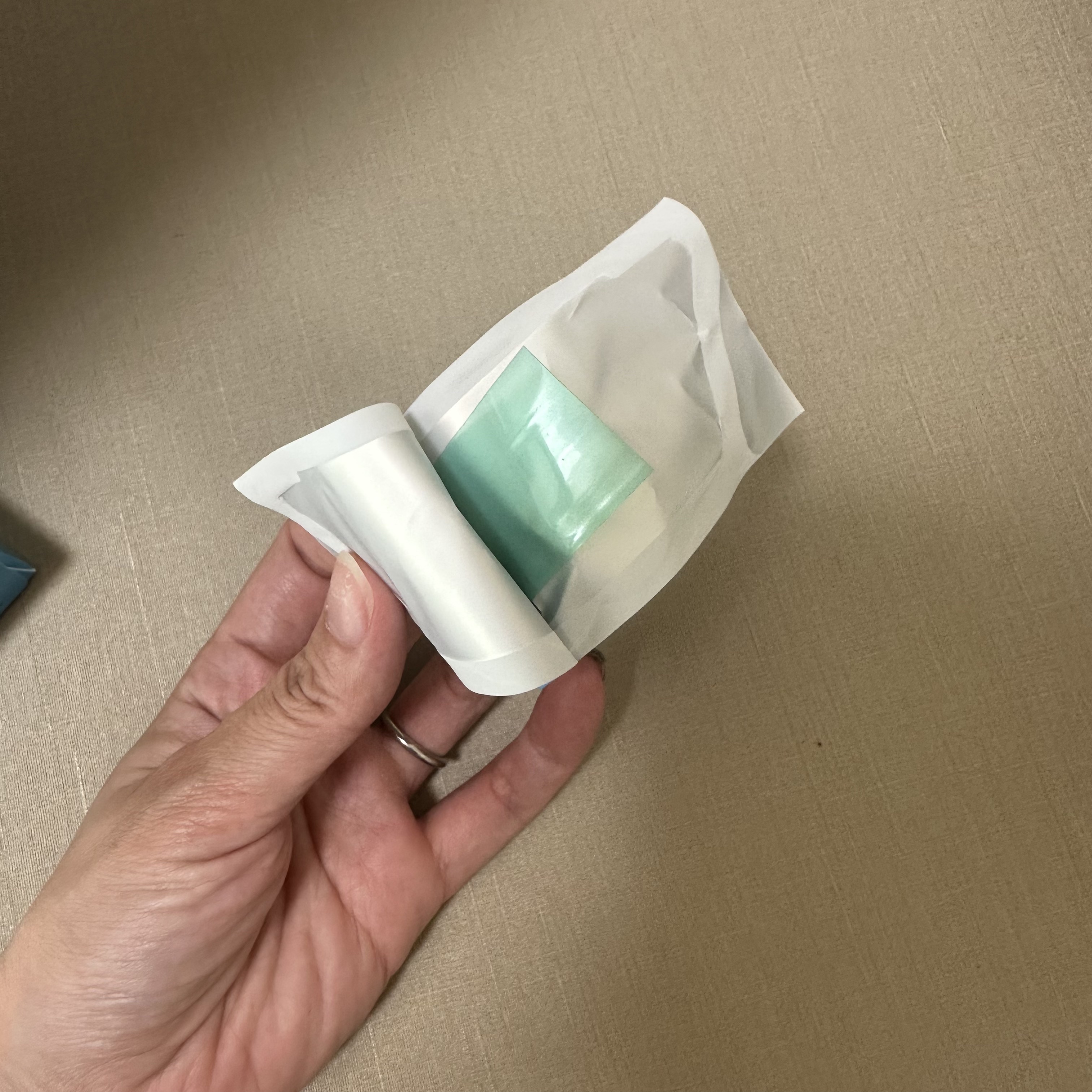 まるで南の海のような青いパッケージの中に薄いフィルム。これはフィルム状になってるヒアルロン酸。個包装になってるからペラっと開封してフィルムを上顎に貼り付けながら溶かして摂取するタイプ。こういうのって甘いのが多いけどこれは甘くなくてすっきり感の...
