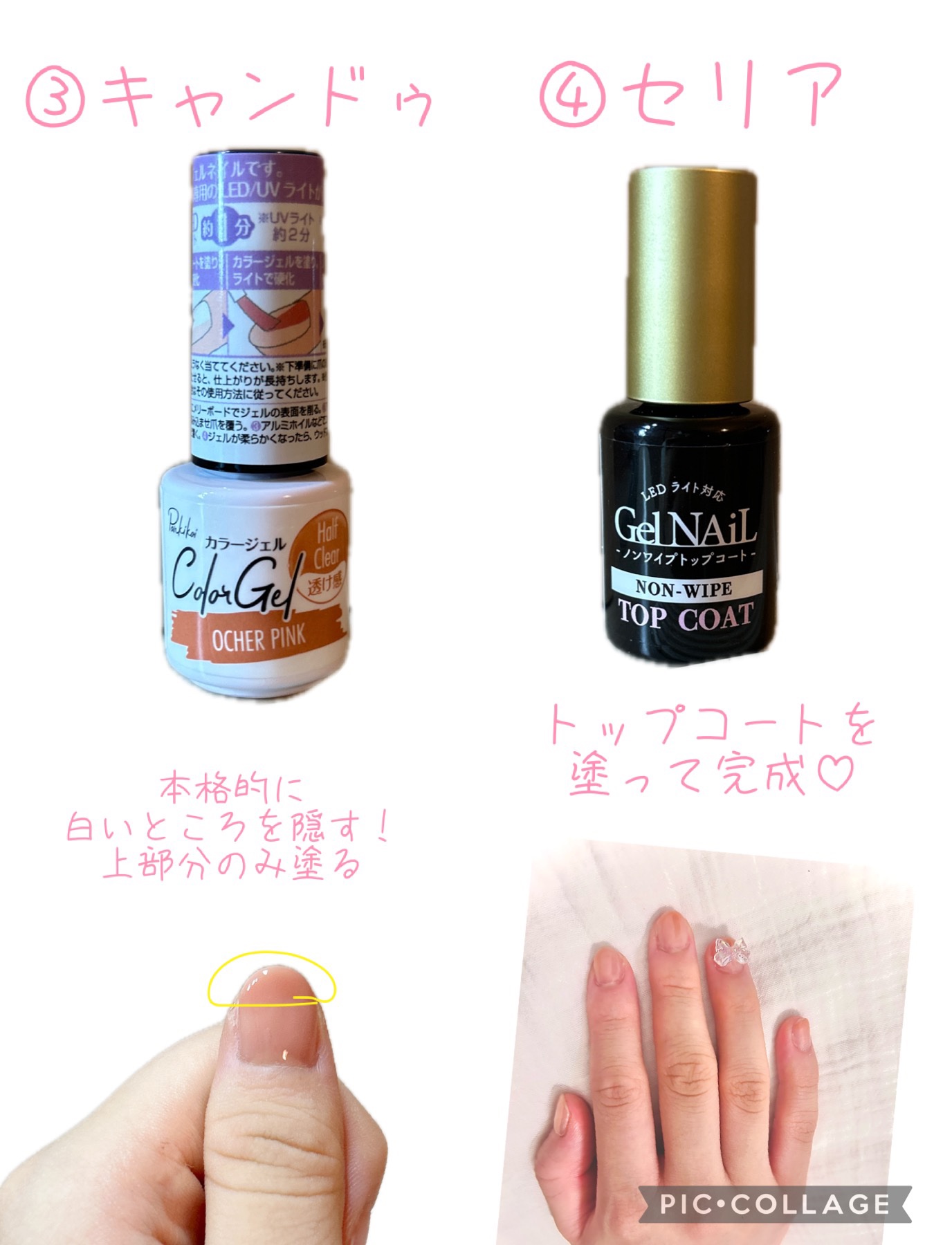 seriaジェルネイルセリアジェルネイル(ライト対応)超優秀♡100均で買えるおすすめジェルネイル♡悪くない。。。良いよ♡(^-^)ただ、内容量は。。。少ないよねぇ。。。お値段相当。。。プチプラで良き♡ピールオフベースコート、ベース&トップコ...