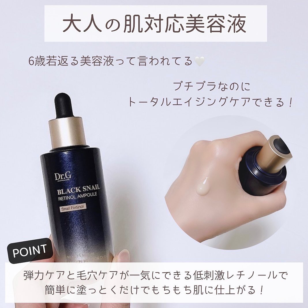 \目指せマイナス6歳肌!!/もっちりハリ・弾力ケア💗Dr.Gブラックスネイルレチノールアンプル¥3187(楽天価格)ブラックスネイルクリーム¥2420(楽天価格)体内の栄養素だけで最大6ヶ月間も生き耐え抜くブラックスネイル🐌✨️成分配...