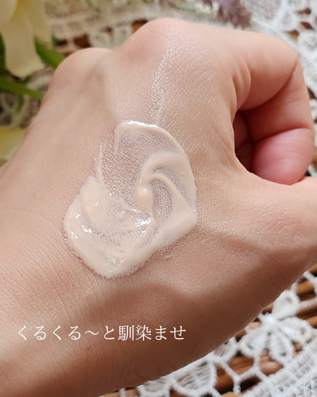 - <ピンク> 水、酸化チタン、ペンチレングリコール、BG、グリセリン、ヒアルロン酸Na、加水分解ヒアルロン酸、キサンタンガム、スクワラン、トコフェロール、アロエベラ葉エキス、ホホバ種子油、アルミナ、ステアリン酸、アジピン酸ジブチル、プロパンジオール、カプリリルグリコール、ポリヒドロキシステアリン酸、ヒドロキシプロピルメチルセルロースステアロキシエーテル、炭酸ジカプリリル、エチルヘキシルグリセリン、ツボクサエキス、ドクダミエキス、スベリヒユエキス、トリエトキシカプリリルシラン、アオモジ果実油、クエン酸、カプリル酸グリセリル、ロドデンドロンフェルギネウムエキス、1,2-ヘキサンジオール、アラントイン、ステアリン酸スクロース、オレンジ油、(アクリロイルジメチルタウリンアンモニウム/VP)コポリマー、ダマスクバラ花水、ナイアシンアミド、ラウリルカルバミン酸イヌリン、マンダリンオレンジ果皮油、(カプリル酸/カプリン酸)ヤシアルキル、リン酸2Na、リモネン、リナロール、シトラール、シラカンバ樹液、メチルプロパンジオール、アデノシン、ジエチルアミノヒドロキシベンゾイル安息香酸ヘキシル、ヤマザクラ花エキス、ビオサッカリドガム-1、t-ブタノール、ポリアクリレートクロスポリマー-6、ポリシリコーン-15、モモ果実エキス、ツベルマグナツムエキス、エチルヘキシルトリアゾン、ヤナギラン花/葉/茎エキス、(VP/エイコセン)コポリマー、カプリン酸ポリグリセリル-2、モモ花エキス、サリチル酸ブチルオクチル、ポリエーテル-1、酸化鉄(CI 77492)、酸化鉄(CI 77491)