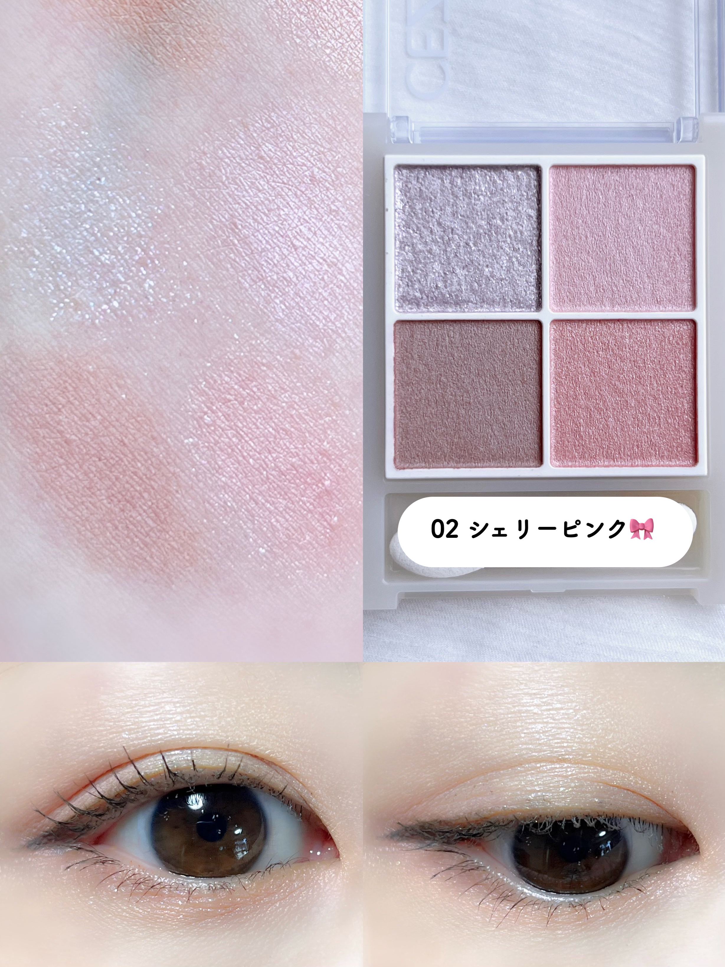 - 淡色グラデでソフトな陰影を作る4色アイシャドウ。