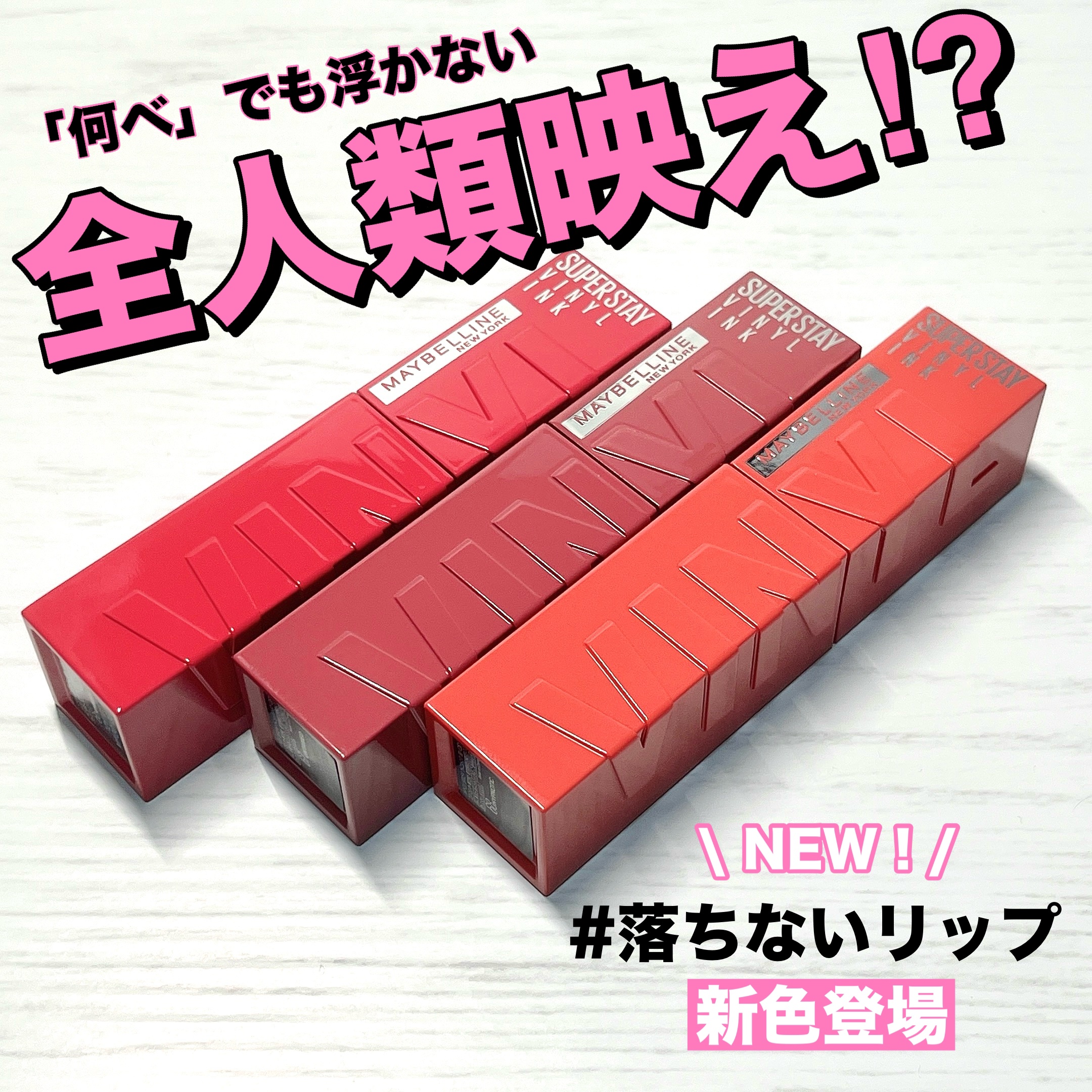 - メイベリン人気No.1リップ からツヤタイプついに誕生!*1 シャカシャカ振って!#落ちないリップ*2 色・ツヤ・仕上がり、全てロック。 〈製品特徴〉 ①シャカシャカ振って、長持ち効果! 膜形成成分*3と高濃度ピグメント*4の2層構造。 シャカシャカ振ると膜形成成分*3と高濃度ピグメント*4が混ざり、 色、ツヤ、仕上がりの長持ち効果! ②色もツヤも落ちない! 最長16時間続く、#落ちないリップ*2 メイベリン独自のトリプルロックフォーミュラ。色・ツヤ・仕上がり、全てロック。 食べても、飲んでも、塗りたての仕上がりが落とすまで続く。*2 ③濃密な発色とツヤをひと塗りで。 塗った瞬間、ムラなく発色。 顔色まで明るくトーンアップするような仕上がりに。*5 ④唇を包み込み、うるおい感ある仕上がりに。 乾燥しにくく、一日中*6心地良い仕上がりに。 塗った瞬間、唇をふっくらとみせ、縦じわが目立ちにくい。 *1:インテージSRI+調べ。2018年9月~2022年7月までのスーパー、ドラッグストア等におけるメイベリン ニューヨーク リップカテゴリーでの売上金額に基づく。 *2:着用16時間を想定した最長の場合において。メイクアップリムーバーで落とすことが可能です。メイベリン ニューヨーク調べ。個人差があります。 *3:トリメチルシロキシケイ酸、ポリプロピルシルセスキオキサン、アルキル(C30-45)ジメチルシリルポリプロピルシルセスキオキサン、ポリメチルシルセスキオキサン/トリメチルシロキシケイ酸。 *4:メイベリン従来品(ウォーター シャイニー ボリューミー パール)と比較において、3倍のピグメントを配合 *5:メイクアップ効果 *6:メイベリン ニューヨーク調べ。個人差があります。