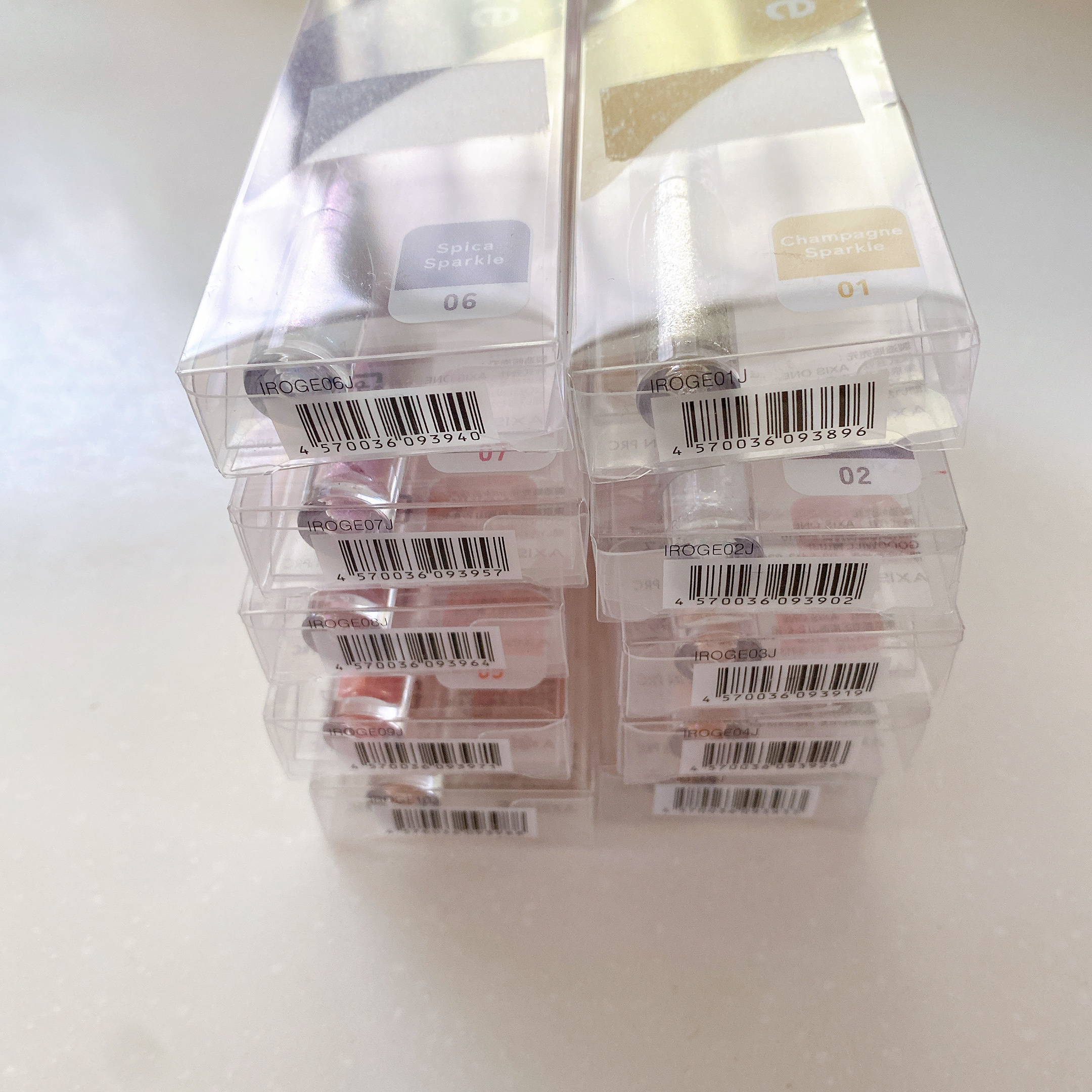 - <01 シャンパーニュスパークル(Champagne Sparkle)> 水、BG、ホウケイ酸(Ca/Al)、PET、ペンチレングリコール、アクリレーツコポリマー、ベンジルアルコール、カルボマー、AMP、EDTA-2Na、エチルヘキシルグリセリン、トコフェロール、銀 <02 クリスタルスパークル(Crystal Sparkle)> 水、エタノール、ポリブチレンテレフタレート、PET、アクリレーツコポリマー、PG、グリセリン、(アクリロイルジメチルタウリンアンモニウム/VP)コポリマー、フェノキシエタノール、カプリリルグリコール、ポリソルベート60、エチルヘキシルグリセリン、パンテノール、カルノシン、ナイアシンアミド、酢酸トコフェロール、EDTA-2Na、デヒドロ酢酸Na、ヤグルマギク花エキス <03 ピンクロゼスパークル(Pinkrose Sparkle)> 水、エタノール、ホウケイ酸(Ca/Al)、グリセリン、合成フルオロフロゴパイト、1,2-ヘキサンジオール、PVP、フェノキシエタノール、アクリル酸Naグラフトデンプン、ヒドロキシプロピルメチルセルロース、キサンタンガム、カプリリルグリコール、酸化スズ、グリオキサール、酸化チタン、酸化鉄 <04 ピーチスパークル(Peach Sparkle)> 水、エタノール、PET、アクリレーツコポリマー、ポリブチレンテレフタレート、PG、グリセリン、(アクリロイルジメチルタウリンアンモニウム/VP)コポリマー、ホウケイ酸(Ca/チタン)、フェノキシエタノール、合成フルオロフロゴパイト、カプリリルグリコール、マイカ、ポリソルベート60、エチルヘキシルグリセリン、パンテノール、カルノシン、ナイアシンアミド、酢酸トコフェロール、EDTA-2Na、デヒドロ酢酸Na、酸化スズ、ヤグルマギク花エキス、酸化チタン、酸化鉄 <05 さくらスパークル(SAKURA Sparkle)> 水、BG、合成フルオロフロゴパイト、ホウケイ酸(Ca/チタン)、ペンチレングリコール、ポリソルベート20、マイカ、フェノキシエタノール、TEA、カルボマー、EDTA-2Na、アルガニアスピノサ核油、酢酸トコフェロール、ホホバ種子エキス、酸化スズ、酸化チタン、酸化鉄 <06 スピカ スパークル(Spica Sparkle)> 水、エタノール、ホウケイ酸(Ca/Al)、アクリレーツコポリマー、PG、グリセリン、(アクリロイルジメチルタウリンアンモニウム/VP)コポリマー、フェノキシエタノール、カプリリルグリコール、ポリソルベート60、エチルヘキシルグリセリン、パンテノール、カルノシン、ナイアシンアミド、酢酸トコフェロール、EDTA-2Na、酸化スズ、デヒドロ酢酸Na、マイカ、ヤグルマギク花エキス、酸化チタン、酸化鉄 <07 オーロラスパークル(Aurora Sparkle)> 水、ホウケイ酸(Ca/Al)、BG、ペンチレングリコール、マイカ、フェノキシエタノール、合成フルオロフロゴパイト、カルボマー、AMP、EDTA-2Na、酸化スズ、酸化チタン、カルミン <08 ピングレスパークル(PINGRA Sparkle)> 水、エタノール、合成フルオロフロゴパイト、ホウケイ酸(Ca/Al)、アクリレーツコポリマー、PG、グリセリン、(アクリロイルジメチルタウリンアンモニウム/VP)コポリマー、フェノキシエタノール、マイカ、カプリリルグリコール、ポリソルベート60、エチルヘキシルグリセリン、パンテノール、カルノシン、ナイアシンアミド、酢酸トコフェロール、酸化スズ、EDTA-2Na、デヒドロ酢酸Na、ヤグルマギク花エキス、酸化チタン、酸化鉄 <09 サンライズスパークル(Sunrise Sparkle)> 水、合成フルオロフロゴパイト、エタノール、アクリレーツコポリマー、PG、グリセリン、(アクリロイルジメチルタウリンアンモニウム/VP)コポリマー、フェノキシエタノール、カプリリルグリコール、ポリソルベート60、マイカ、エチルヘキシルグリセリン、パンテノール、カルノシン、ナイアシンアミド、酢酸トコフェロール、酸化スズ、EDTA-2Na、デヒドロ酢酸Na、マルトデキストリン、ヤグルマギク花エキス、酸化チタン、カルミン、酸化鉄 <10 サンセットスパークル(Sunset Sparkle)> 水、エタノール、ホウケイ酸(Ca/チタン)、合成フルオロフロゴパイト、ホウケイ酸(Ca/Al)、アクリレーツコポリマー、PG、グリセリン、(アクリロイルジメチルタウリンアンモニウム/VP)コポリマー、フェノキシエタノール、シリカ、カプリリルグリコール、ポリソルベート60、酸化スズ、エチルヘキシルグリセリン、パンテノール、カルノシン、ナイアシンアミド、酢酸トコフェロール、EDTA-2Na、マイカ、デヒドロ酢酸Na、ヤグルマギク花エキス、酸化チタン、酸化鉄 <11 紫陽花> 水、PET、エタノール、アクリレーツコポリマー、ポリブチレンテレフタレート、PG、グリセリン、(アクリロイルジメチルタウリンアンモニウム/VP)コポリマー、フェノキシエタノール、ホウケイ酸(Ca/Al)、カプリリルグリコール、ポリソルベート60、エチルヘキシルグリセリン、パンテノール、カルノシン、ナイアシンアミド、酢酸トコフェロール、EDTA-2Na、マイカ、ヤグルマギク花エキス、酸化スズ、酸化チタン、赤227、酸化鉄 <12 金魚花火> 水、PET、エタノール、アクリレーツコポリマー、ポリブチレンテレフタレート、PG、グリセリン、(アクリロイルジメチルタウ