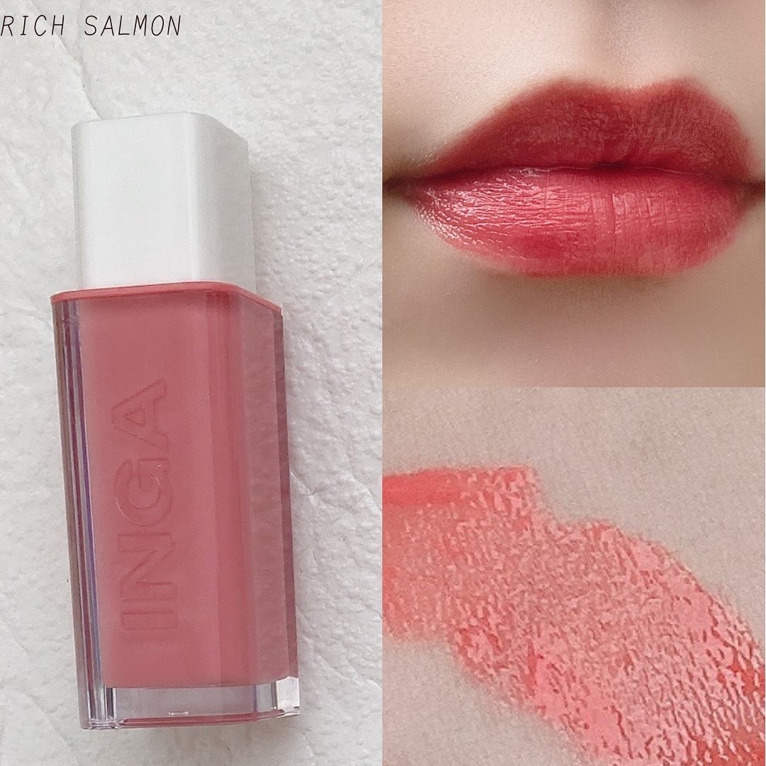 最高なリップ見つけた!! 私は落ちないリップを求めて色々なリップを買っているのですが、色がいまいち似合わない、好みじゃない…ということがよくあります🥺 そんな時に出会ったのがこのリップ!INGA Water Glow Lip Tint 06 ヌードジンジャー ¥1,815 まさに私が求めていた色だった!!色だけじゃなくて落ちづづらさも◎ ティッシュオフ後は3枚目のようになります!かなり残ってる✨