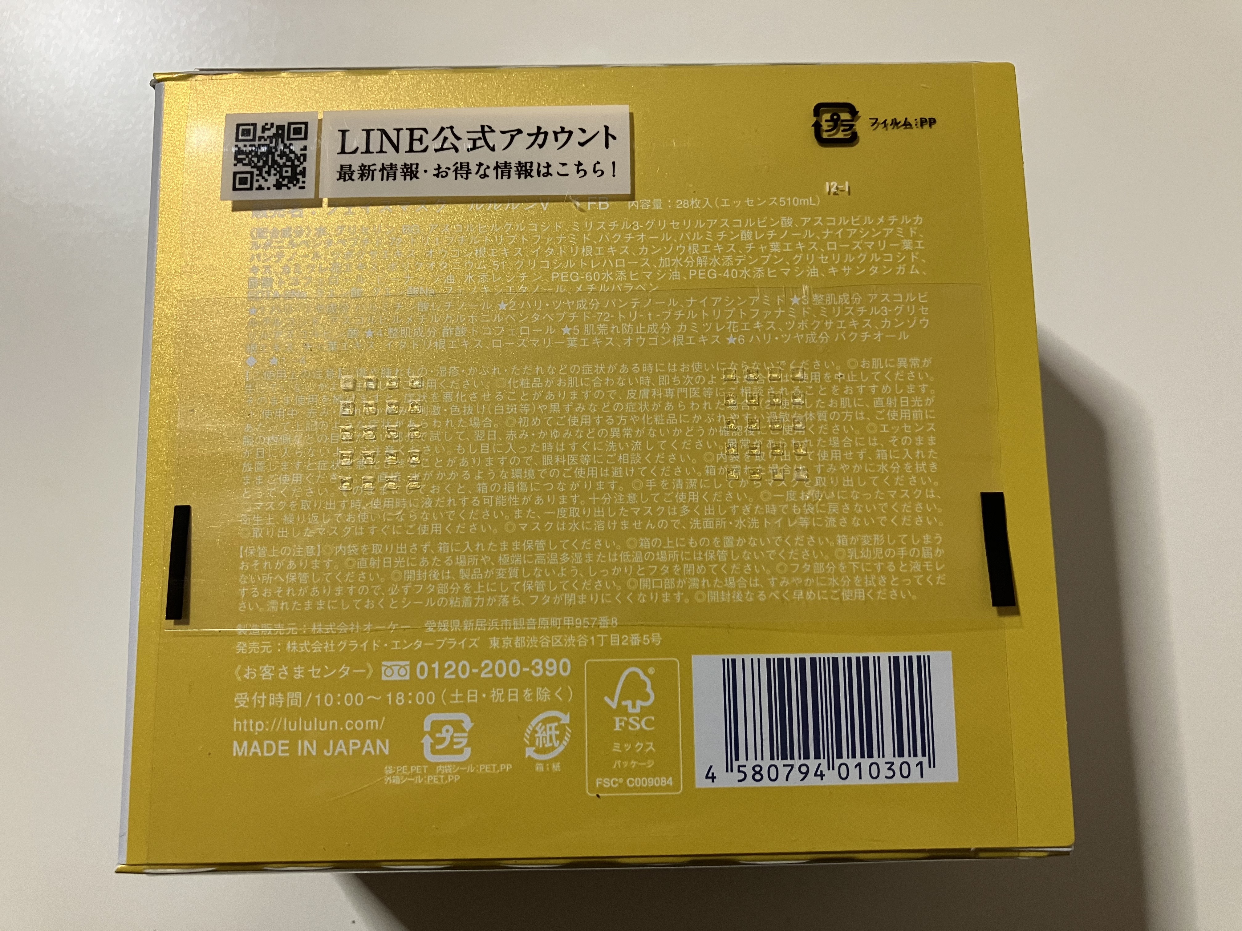 - <7枚入> 水、グリセリン、BG、アスコルビルグルコシド、ミリスチル3-グリセリルアスコルビン酸、アスコルビルメチルカルボニルペンタぺプチド-72-トリ-t-ブチルトリプトファナミド、バクチオール、バルミチン酸レチノール、ナイアシンアミド、パンテノール、ツボクサエキス、オウゴン根エキス、イタドリ根エキス、カンゾウ根エキス、チャ葉エキス、ローズマリー葉エキス、カミツレ花エキス、ポリクオタニウム-51、グリコシルトレハロース、加水分解水添デンプン、グリセリルグルコシド、酢酸トコフェロール、ピーナッツ油、水添レシチン、PEG-60水添ヒマシ油、PEG-40水添ヒマシ油、キサンタンガム、EDTA-2Na、クエン酸、クエン酸Na、フェノキシエタノール、メチルパラベン <28枚入> 水、グリセリン、BG、アスコルビルグルコシド、ミリスチル3-グリセリルアスコルビン酸、アスコルビルメチルカルボニルペンタぺプチド-72-トリ-t-ブチルトリプトファナミド、バクチオール、バルミチン酸レチノール、ナイアシンアミド、パンテノール、ツボクサエキス、オウゴン根エキス、イタドリ根エキス、カンゾウ根エキス、チャ葉エキス、ローズマリー葉エキス、カミツレ花エキス、ポリクオタニウム-51、グリコシルトレハロース、加水分解水添デンプン、グリセリルグルコシド、酢酸トコフェロール、ピーナッツ油、水添レシチン、PEG-60水添ヒマシ油、PEG-40水添ヒマシ油、キサンタンガム、EDTA-2Na、クエン酸、クエン酸Na、フェノキシエタノール、メチルパラベン