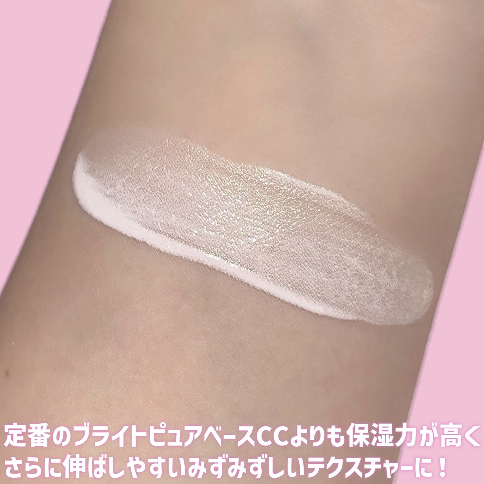- 【数量限定】 \より使いやすくアップデート/ 人気No.1*1トーンアップ*2UV下地から ピンク下地の概念を変える*1新色登場! 色と光で補正して、みずみずしい桃のような 透明感*2のある生ツヤ肌が叶うトーンアップ*2UV下地 #桃白肌ベース*2 【商品POINT】 ①青みピンクで叶う桃白肌*2 配合比率を計算したこだわりの青みピンクカラーで 血色感だけでなく“くすみを補正し透明感をプラス*2” お肌になじむトーンアップ力とツヤ感パールで 透けるようなちゅるんとした生ツヤ桃白肌*2に ②テカりにくいのにうるおい続くケア処方 モモ葉エキス・ナイアシンアミド・セラミドをはじめとした 12種類の美容保湿成分をたっぷりと配合 乾燥による余分な皮脂を抑えてテカリを防止 【UPDATE POINT】 ①とろんとしたテクスチャーで伸びUP 定番のブライトピュアベースCCよりも みずみずしくとろんとしたテクスチャーで 伸びのよい使用感に うるおいでお肌を包み込み長時間乾燥を防ぐ ②紫外線カット効果UP 国内最高値のSPF50+PA++++にパワーアップ! しっかり紫外線をカットし白肌*2を守ります ③チューブ容器からポンプ式に変更 より適量を出しやすい容器にしました! *1当社ブランド内において *2メーキャップ効果による