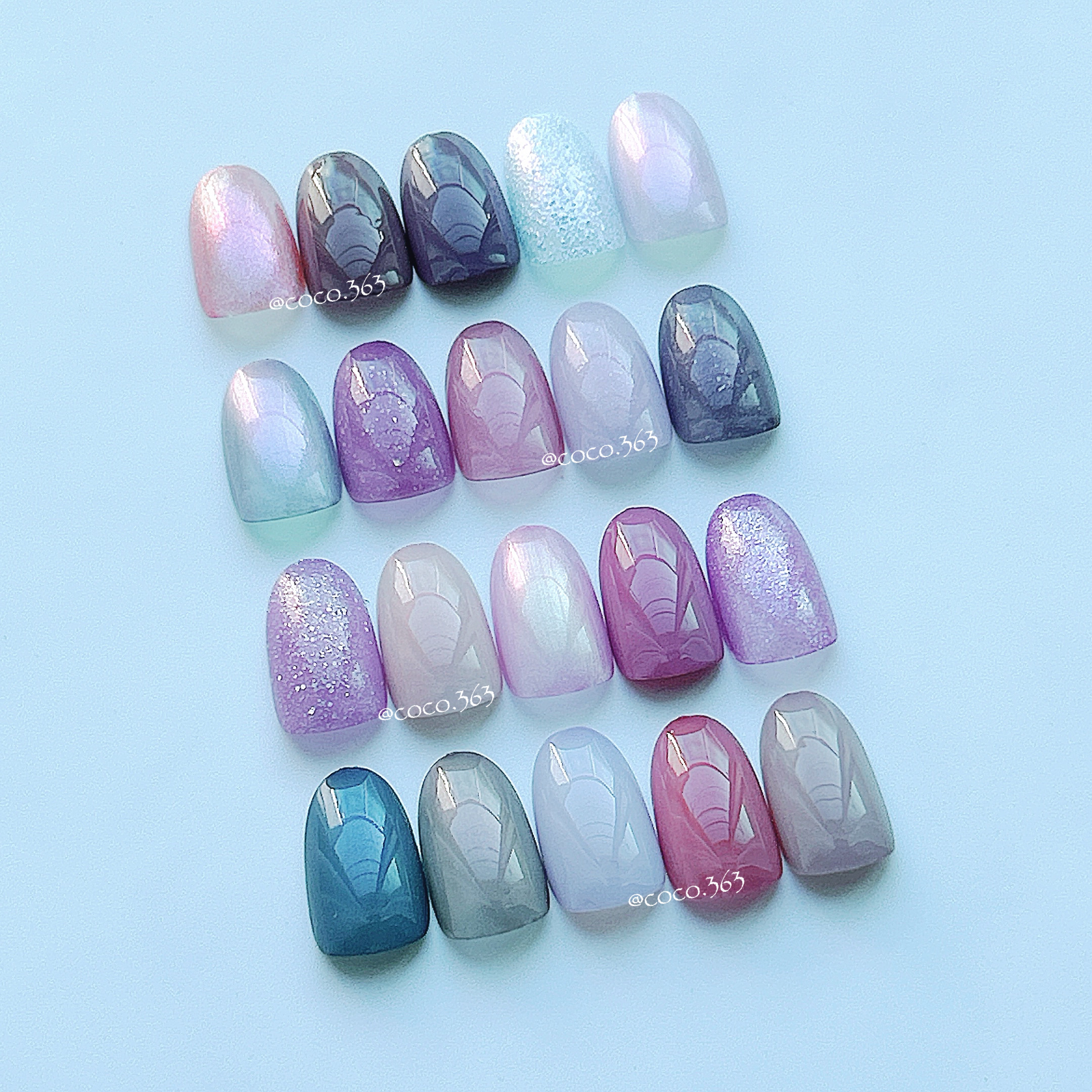 まとめ&文字入れお疲れさま♡ 圧巻の紫陽花カラーたち💅✨ 梅雨の時期も指先が華やかになっていいね💜