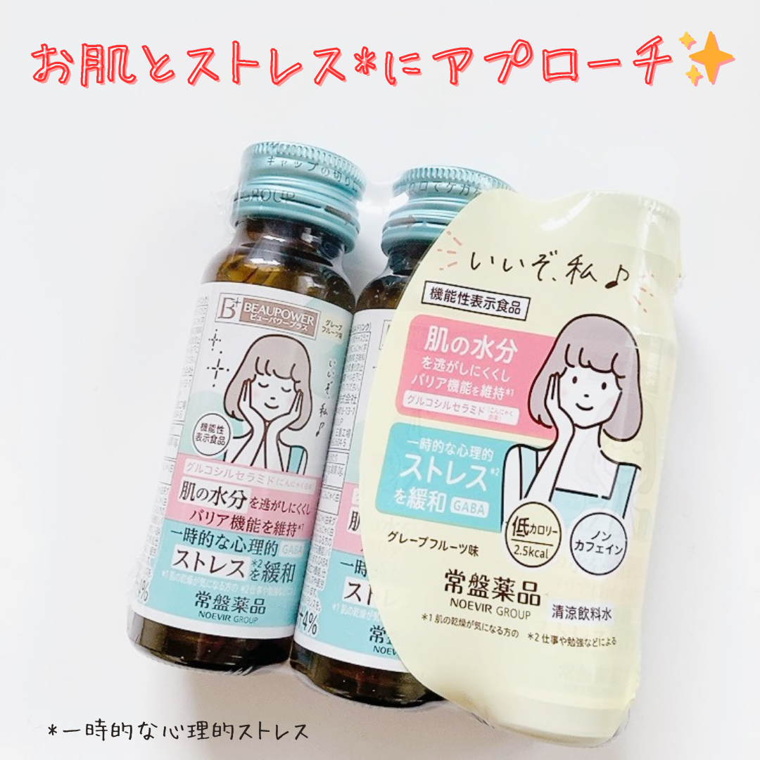 肌の乾燥が気になる方の肌の水分を逃がしにくくし、肌を乾燥から守る機能(バリア機能)を維持するこんにゃく由来グルコシルセラミド 睡眠の質(眠りの深さ)の向上に役立つ、仕事や勉強などによる一時的な心理的ストレスや疲労感を緩和するGABA お肌の潤いケアだけでなく、睡眠の質の向上をサポートなど、Wケアできるところがとても魅力的なドリンク✨