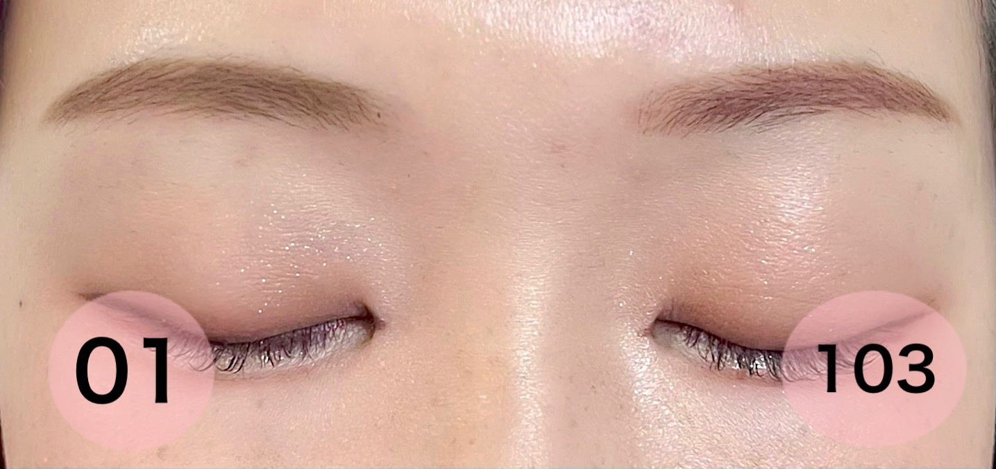 ホリデー限定色を見てブルー入ってる!これは絶対欲しいって思って購入しました💗 左上ホワイト▶️かなりギランギランでグリッターのような輝き✨アイシャドウや目頭に使おうかなぁ😆 右下ブルー▶️ブルーはあまり発色せずピンクブルーホワイトの偏光ラメが主役な感じ🩵