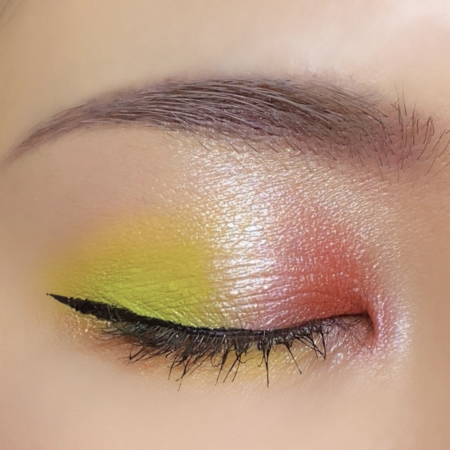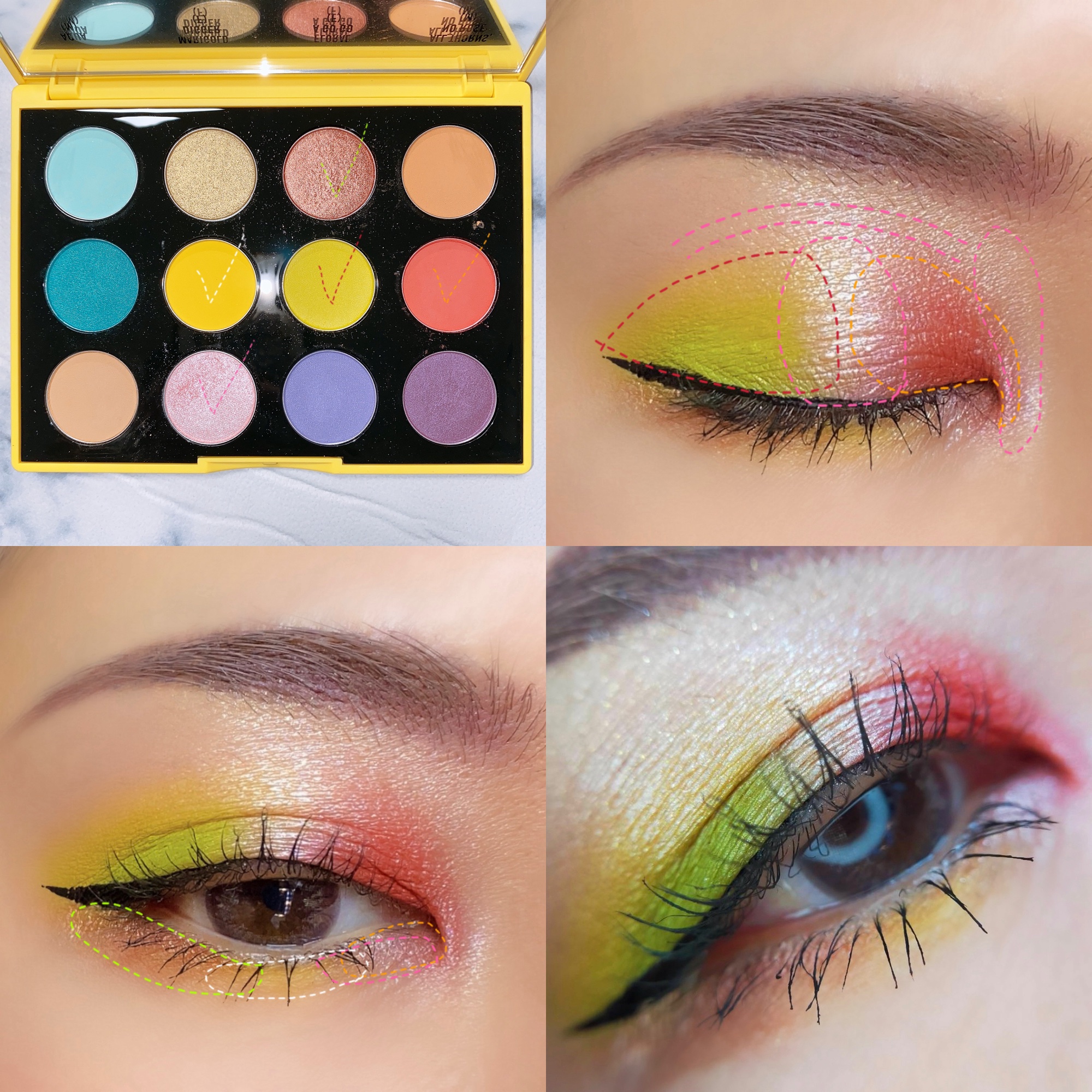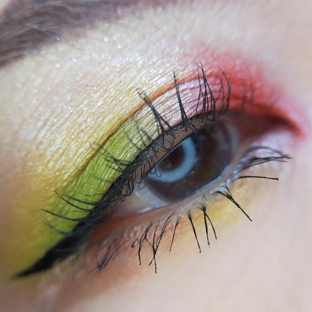 アイメイク記録✨M・A・Cスモールアイシャドウ×12ボタニックパニックちふれツインカラーアイシャドウ84 グリーン系D-UPシルキーリキッドアイライナーWPピスタチオラテグリーン×イエローなメイク💚💛全体的に薄めにぼかしつつグラデ下瞼に同じ色...