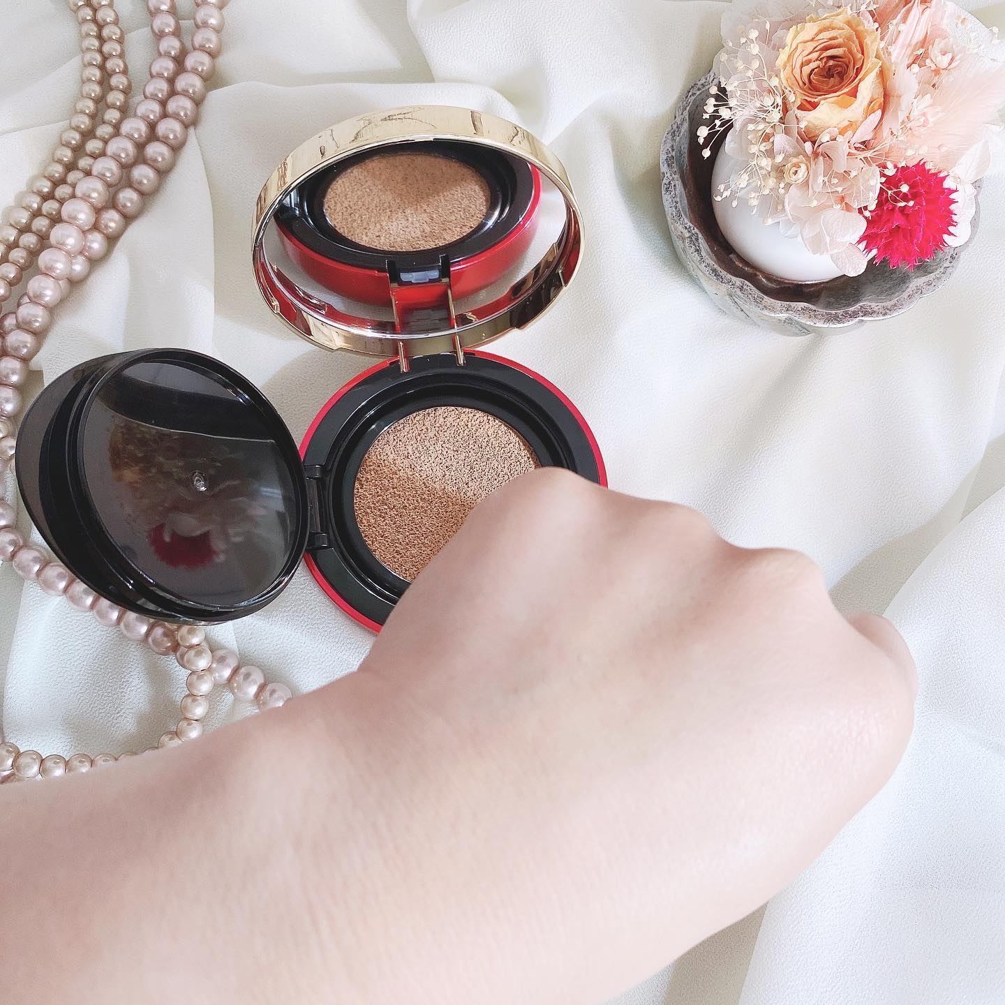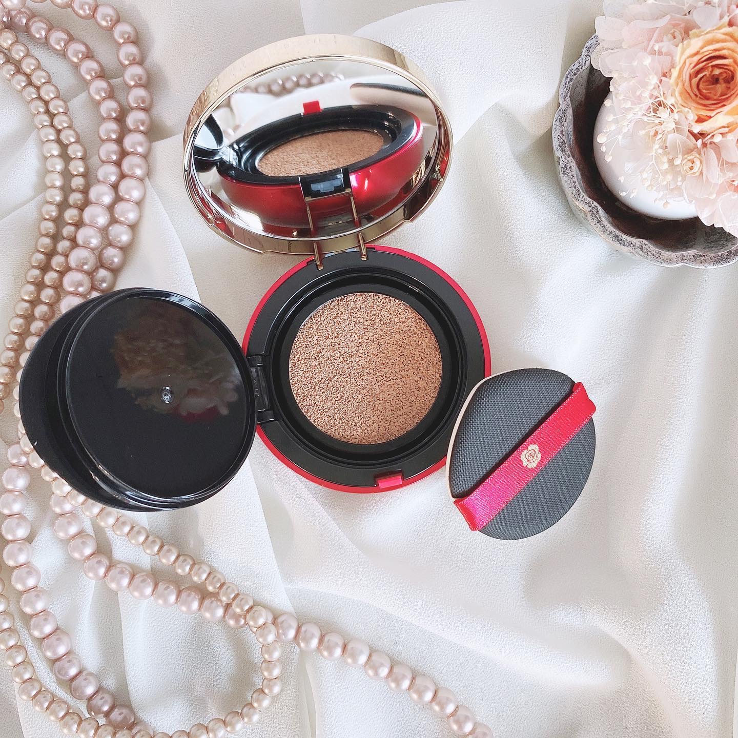 美容液、日焼け止め、下地 ファンデーション、コンシーラー ハイライトの6つの役割をしてくれるクッションファンデーション♡ 細かい粒子が肌の表面の凹凸を埋め 光を拡散して、ぼかし効果によって毛穴やシワを自然にカバーし透明美肌へ導いてくれるそう! 下地いらずで忙しい時間でも30秒ぽんぽんするだけでお肌のベースが完成するのがうれしい。