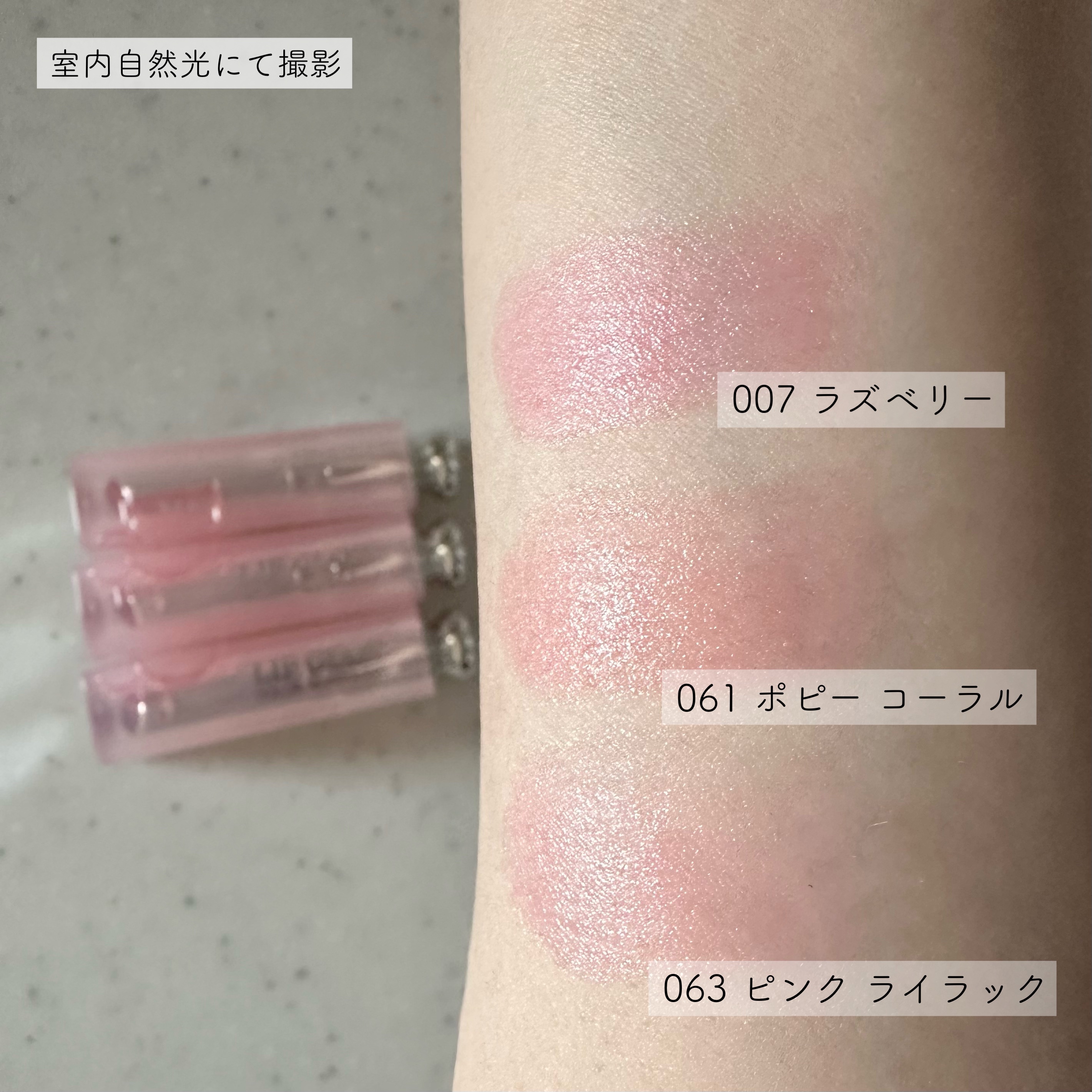 001 ピンク 薄づきなのでささっと使いやすい。 ナチュラルな血色感だから浮かないのも◎ 007 ラズベリー 青みのピンク🩷 わたしの場合は、赤寄りに発色するので、 これ単体というよりは、重ねて使っています。 012 ローズウッド 大人気カラー✨ 超絶使いやすいピンクベージュ系。 誰でも似合う色だと思います♪