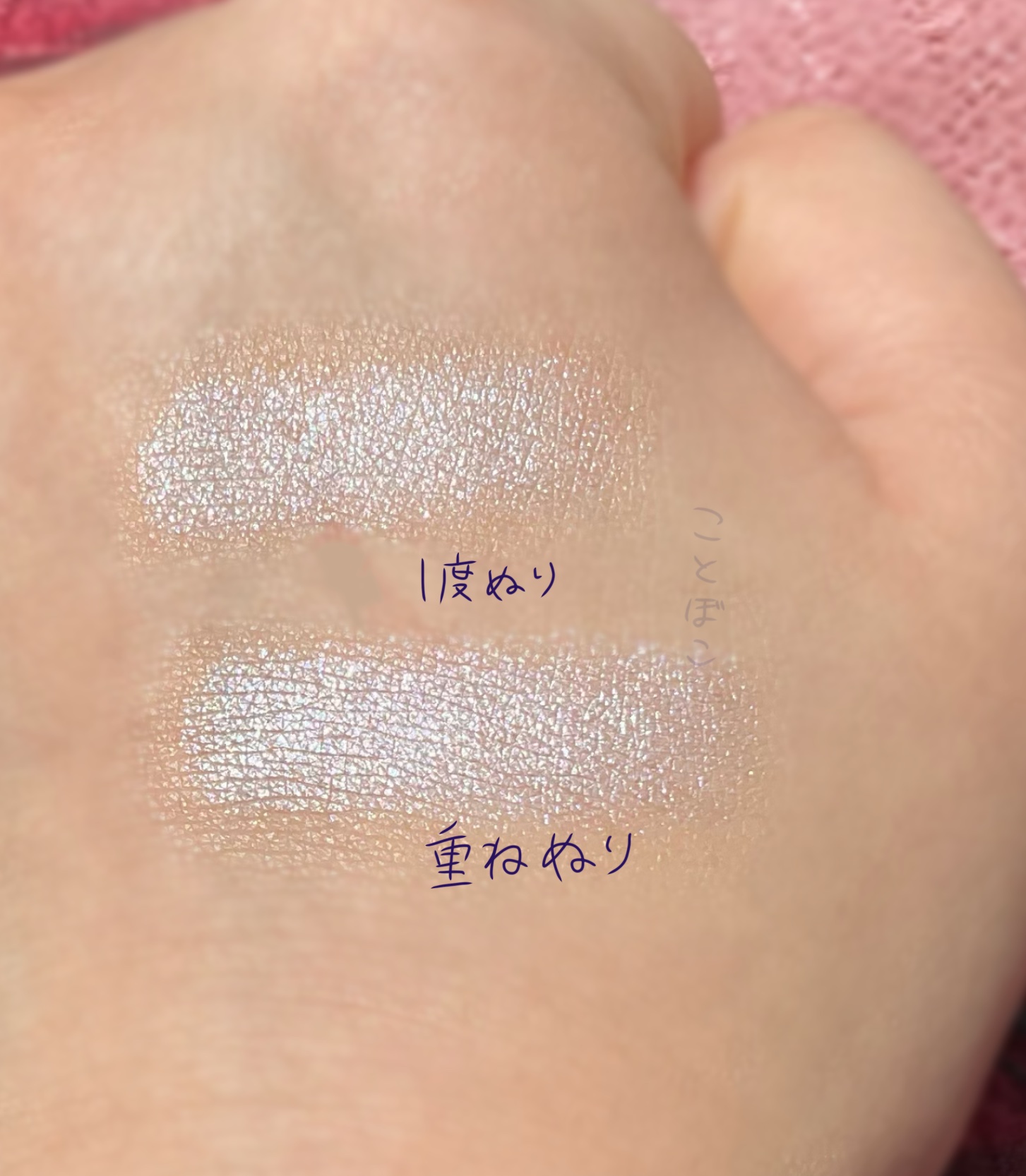 青み寄りのピンクベージュ。でも決して青みすぎるわけではなく、自然な血色感が出る色み。 薄付きで透け感ある。ラメは細かくてギラギラしないし、色みが変に主張することもない。 個人的にピンクベージュは、薄汚れた薄いオレンジになって暑苦しさが出てしまうことが多いけど、これはちゃんと青みがあり、透明感はある程度保たれる。 塗る回数によってナチュラルにもなるし、かわいくもなるし、とても使いやすい。 重ね塗りすると、ピンクが出るようになる。しかし、甘々キュルキュルアイドル青みピンクというわけではなく、比較的万人に使いやすいピンクだと感じた。 まあまとめると、ときめきぎゃんかわドストライク💓 インスタントにかわいい摂取💕 っていう仕上がりではない。 でも、ただただ使いやすくて手に取りやすい。毎日食べたいご飯って感じ。 仕上がりの綺麗さに感心したので、他のものも揃えたいと思った。