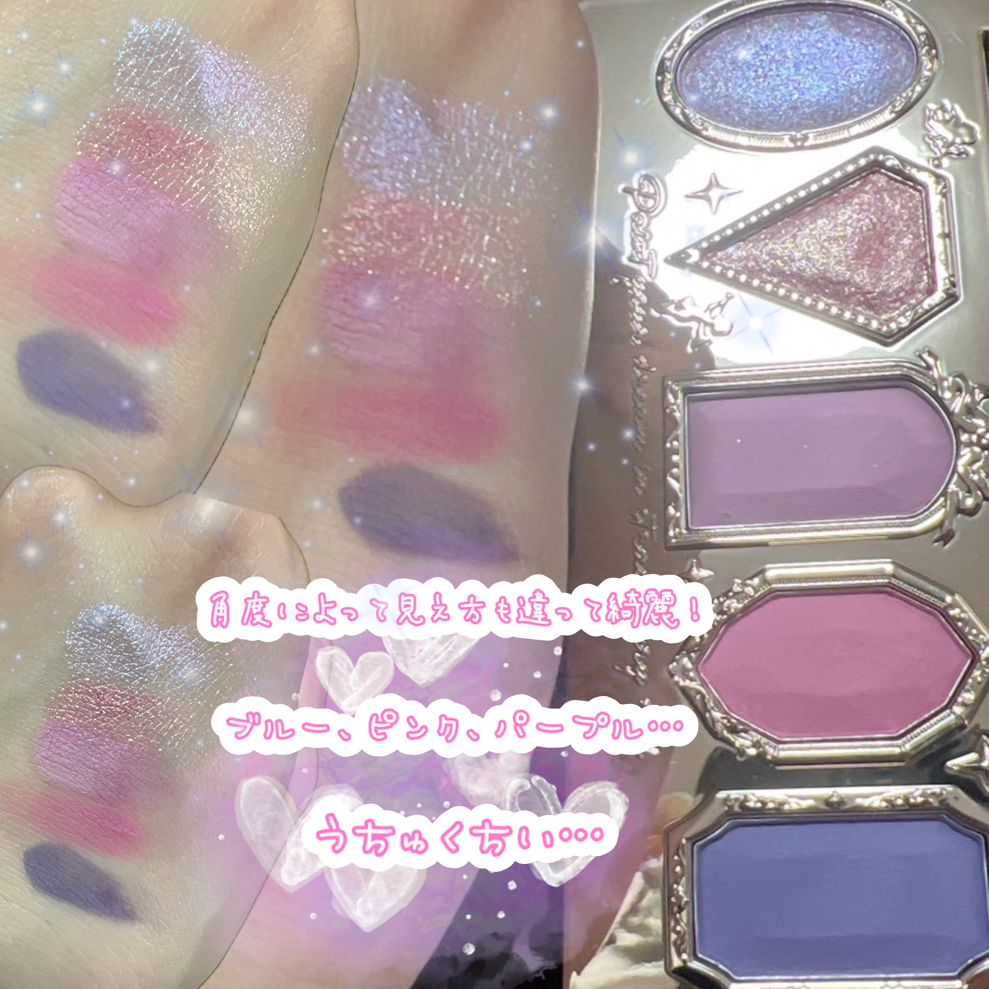 | ラメも、ブルー系やグリーン系の偏光ラメが入っているので、馴染みやすく可愛いメイクできる! | 詳細を見る | ||
