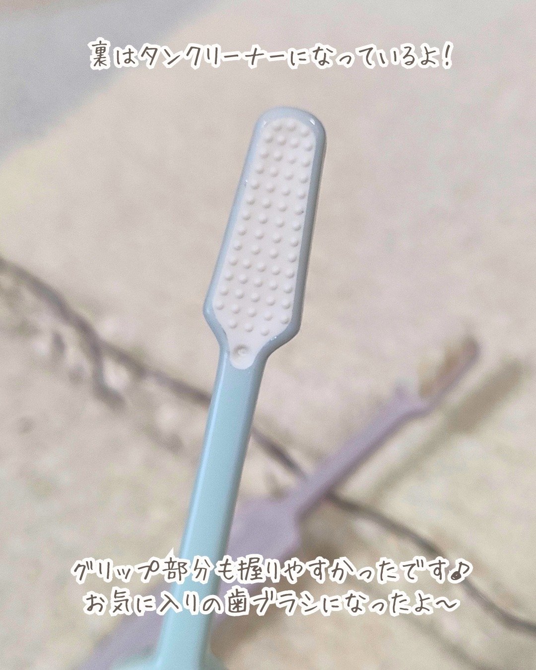 山型ブロック植毛 歯と歯ぐきの間にしっかり届き歯石を取り除いてくれるそう! 高密度ブラシ 歯ぐきにやさしい超高密度植毛約1万本! 先細ヘッド 狭い所にも入り込み、奥歯まで磨きやすい! カラーはベージュ、ブルー、ピンク、パープルの4色展開でどれもくすみカラーで可愛い😍 ブラシがとてもなめらかな毛質で歯と歯ぐきへのあたりがやさしいです😌 山型なのも歯の間にフィットしてくれて磨きやすさ◎ ブラシが高密度だからか?少量の歯磨き粉でたっぷり泡立つので磨き心地が良かったです✨ ヘッドの先が細いのも奥まで届きやすくてしっかり磨ける気がしました☀️