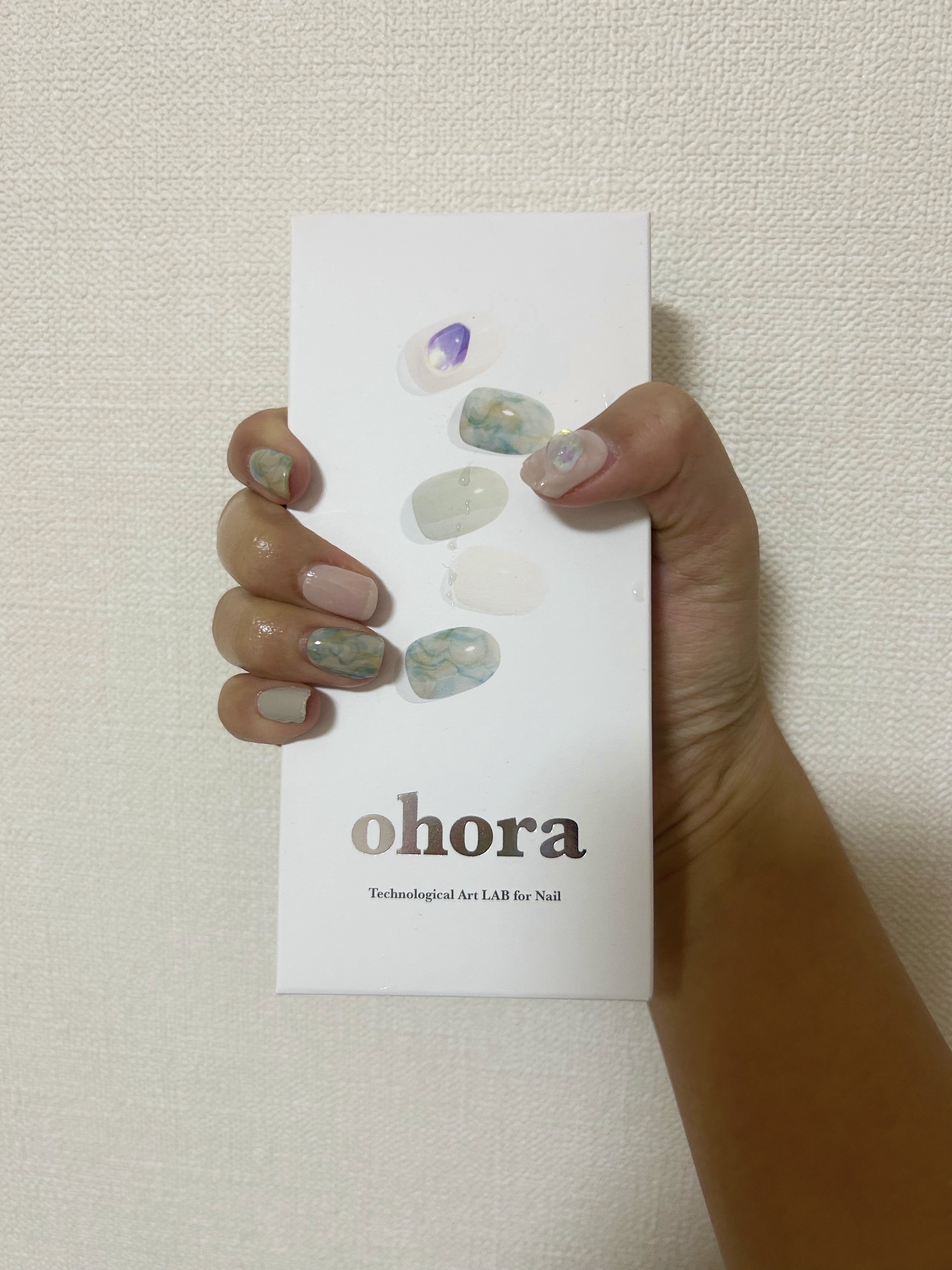 ohoraネイル韓国発のジェルネイルシール。6割硬化されちているネイルシールを爪に貼って最後まで硬化させるという仕様。ジェルだけあって他のネイルシールにはないような立体的なデザインもあります。今回は、ジェイアール京都伊勢丹のPOPUPで購入。...