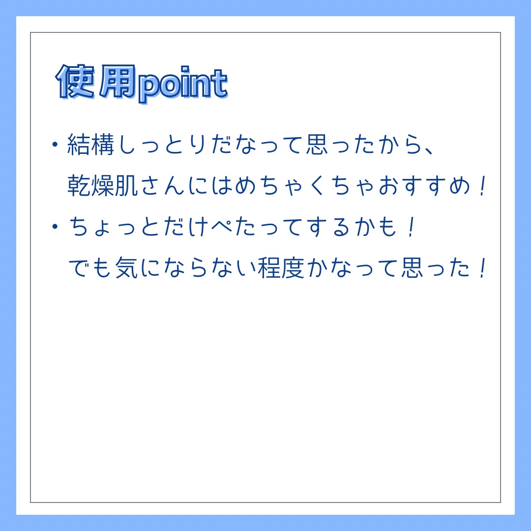 | 伸びが良くて肌馴染みがいい◎しっとりうるおうので量を気にせず使いやすくコスパがいい。 | 詳細を見る | ||