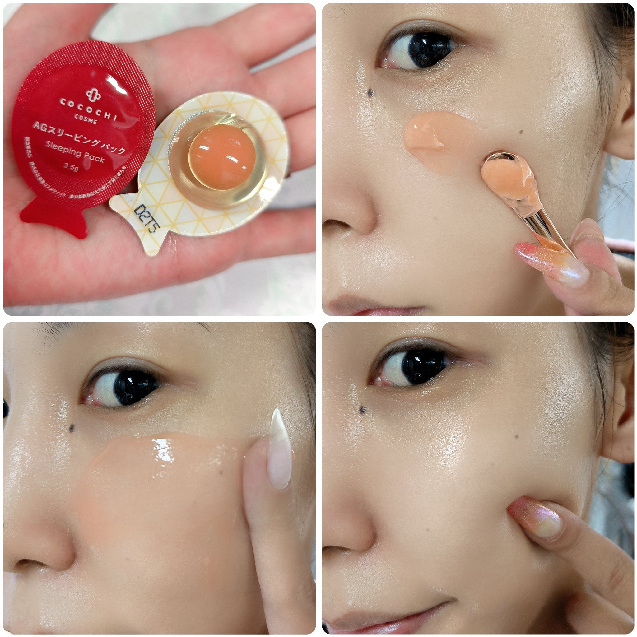 ココチAGスリーピングパックN夜用のパックです。付属のオリジナルスパチュラがまた可愛くてお気に入り!アスタキサンチンを主成分とするクリームとジェルを混ぜ合わせたフレッシュなナイトパック。パワー保湿成分である「アスタキサンチン」、「ビタミンB1...