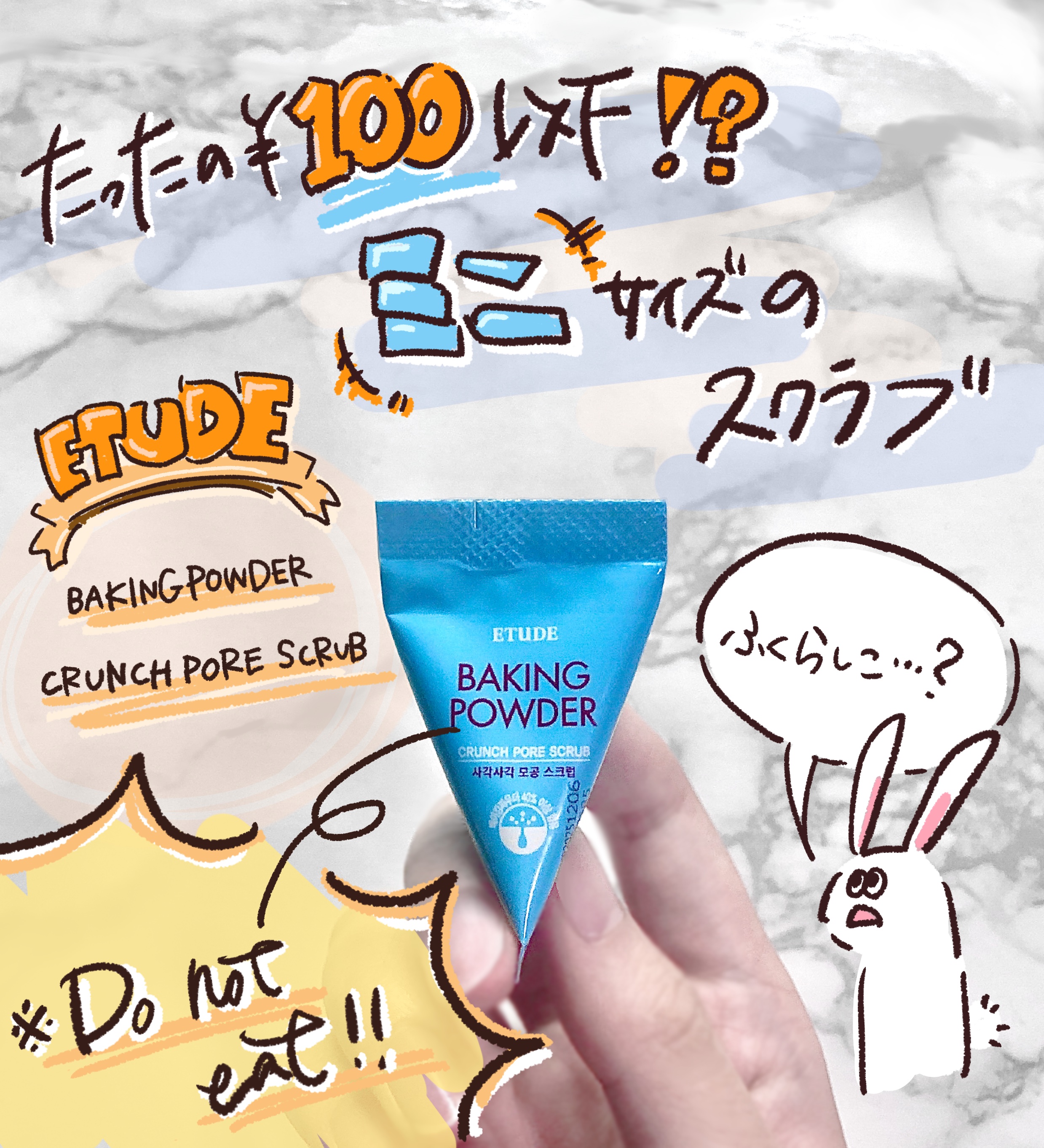 ETUDEベーキングパウダークランチポアスクラブ(LIPSでは何故か未発売のリニューアル後のやつしかなかった💦)・顔にも使えるけど身体に使うほうがいいと感じた・顔は刺激が強めかも・手が濡れてると三角の袋が開けにくい・取り出しにくい・たまに切り...
