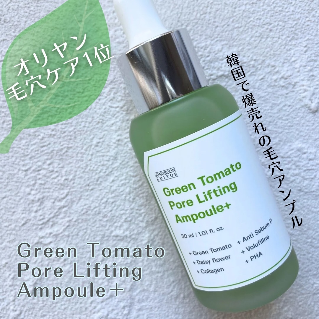 成分エディターグリーントマトポアリフティングアンプル縦毛穴、横毛穴、メラニン毛穴の気になる3種の毛穴にアプローチ!毛穴が気になっている方におすすめなアンプル😊低刺激テスト済みで朝も夜も使用可能!とろみがあるテクスチャーのアンプルを満べんなく塗...