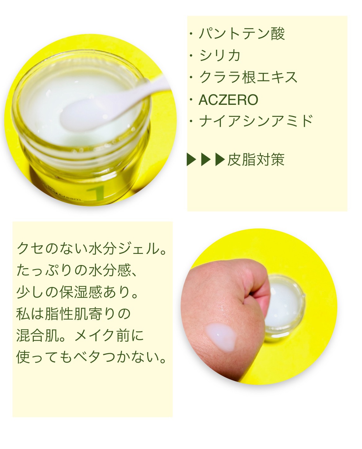 さっぱりと水分チャージ! ニキビに悩んでる方におすすめだよ♡ パントテン酸とは? 肌のターンオーバーの促進しを働きかけることでニキビができにくい肌環境を整えるのに役立ちます。 さっぱりとしたクリームで重ね塗りしてもベタベタしなかった! 油分感を感じないクリームで伸びがよく使いやすかった!