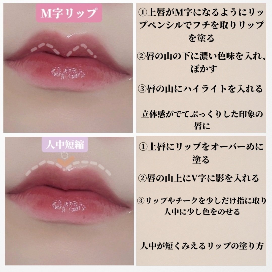 リップただ塗ってるだけだった、、🥹🤦🏻♀️ 塗り方次第でめっちゃ印象変わるね❤︎❤︎ 全部かわいー!! 保存かんりゃー💗