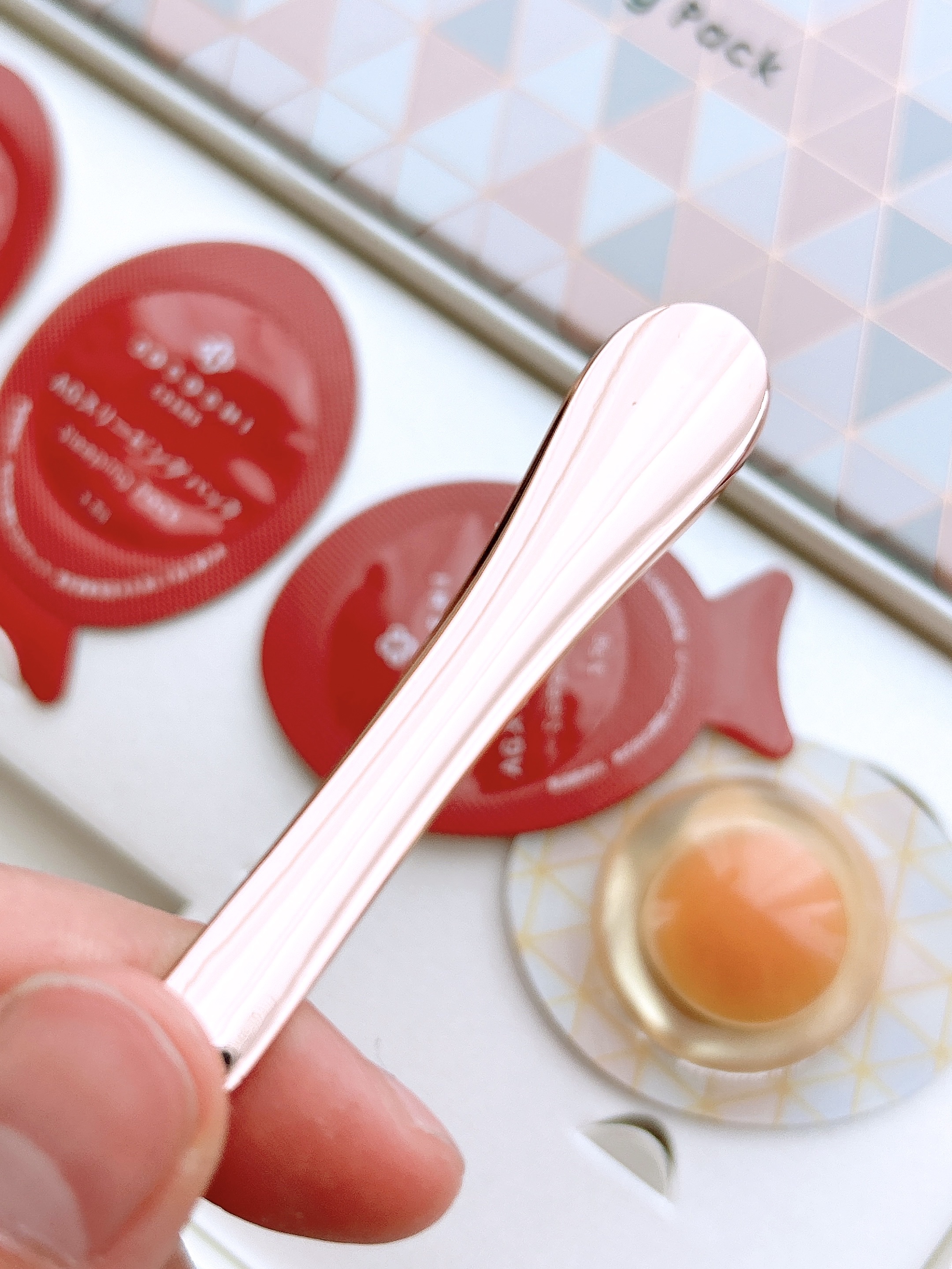 - <ココチ AG スリーピングパック N> 水、BG、エタノール、テトラエチルヘキサン酸ペンタエリスリチル、グリセリン、DPG、ビスPEG-18メチルエーテルジメチルシラン、ジメチコン、トリエチルヘキサノイン、シクロヘキサシロキサン、セテアリルアルコール、(C14-22)アルコール、カルボマー、フェノキシエタノール、セルロース、ポリアクリレート-13、トロメタミン、1,2-ヘキサンジオール、ペンチレングリコール、ポリイソブテン、(C12-20)アルキルグルコシド、シクロペンタシロキサン、ナイアシンアミド、EDTA-2Na、(アクリル酸ヒドロキシエチル/アクリロイルジメチルタウリンNa)コポリマー、ポリソルベート20、ポリシリコーン-11、イソステアリン酸ソルビタン、シリカ、コーン油、β-カロチン、ポリクオタニウム-51、ヒアルロン酸Na、水溶性プロテオグリカン、トリ(カプリル酸/カプリン酸)グリセリル、シアノコバラミン、アスタキサンチン、パルミトイルペンタペプチド-4、香料、ベニバナ赤、酸化鉄