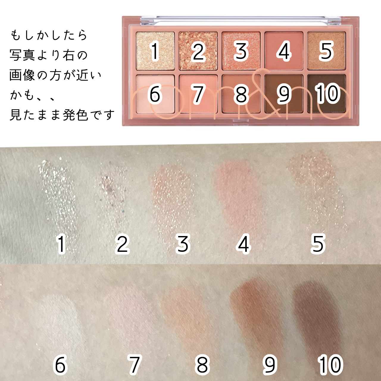 rom&nd ベターザンパレット おそらくこれが王道イエベ春パレット。10色も入っているのでその日の気分によってピンクに寄せたりブラウンに寄せたりできます。 キャンメイク シルキースフレアイズ こちらは一目惚れして購入したもの。全体的にピンク感が強めなのでセカンド夏さんぜひ! sopo アイパレット ピーチやサーモンピンク系で全体的にツヤ感があるので大人っぽい印象になります。
