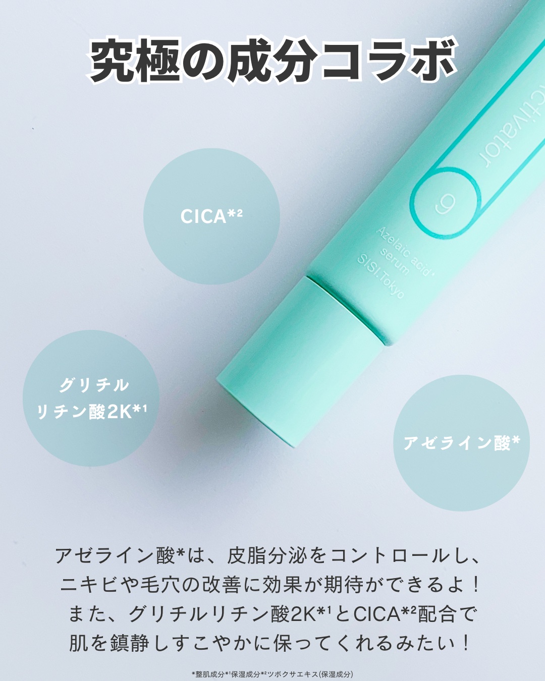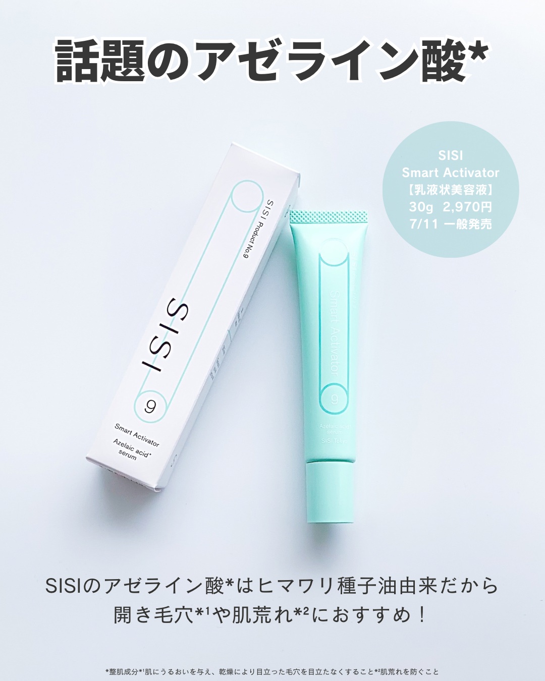 - 肌荒れの予感に惑わずに、いつも好きな肌でいる。アゼライン酸*1を濃密配合した、毎日使える美容液です。デイリーケアのために設計された天然由来のアゼライン酸*1を配合した乳液テクスチャーの美容液です。肌荒れやゆらぎの予感があるときや、デイリーにすこやかさを保ちたいとき、つるっとなめらかな、美しい印象の肌へと導きます。 ◼️特徴1:つるんとなめらかな肌へ。植物由来のアゼライン酸*1を濃密配合 スマートアクティベーターは、デイリーにアゼライン酸*1を肌へ届けることを目的としています。ピュアなアゼライン酸*1を濃密に配合し、肌荒れを防ぎ、さらさら・しっとり・つるつるの肌へと導きます。毛穴、べたつき、赤みを伴う肌荒れ、角質肥厚などのトラブルの予感を頼もしく受け止め、すこやかな肌へとサポートします。 ◼️特徴2:グリチルリチン酸2K*2とCICA*3が肌のすこやかさを支える 肌をすこやかに整えるために、甘草から得られるグリチルリチン酸2K*2とツボクサから得られるCICA*3をサポート保湿成分として配合。肌荒れを防ぎ、素肌の美しさをサポートします。 ◼️特徴3:毎日使える、みずみずしいテクスチャー 微粒子化したアゼライン酸*1を採用し、濃密に配合しながらも、肌への伸びのよさやしっとり感を両立。デイリーユースに最適な使用感を実現しました。 *1 整肌成分 *2 保湿成分 *3 ツボクサエキス(保湿成分) 2024年6月26日(水)より伊勢丹新宿店にて先行販売を開始 2024年7月11日(木)より一般発売を開始