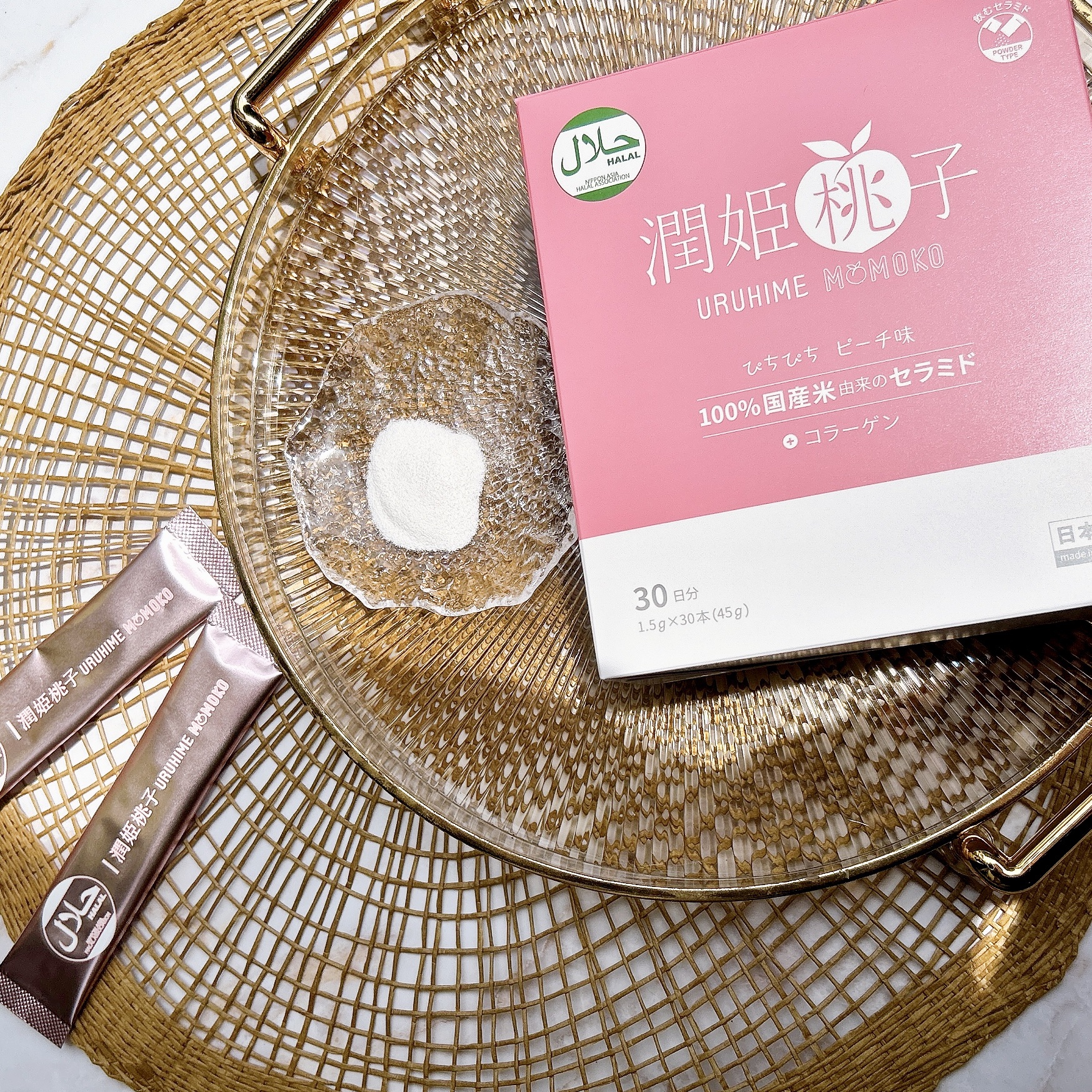 - 100%国産米由来のグルコシルセラミドを1.8㎎配合した、パウダータイプのセラミドサプリメント。 美容成分として、コラーゲン、ビタミンC、ビタミンB群を配合。口どけの良いサラッとしたスティック状のパウダータイプで時間や場所を気にせずいつでも気軽にセラミドケアができます。ほんのり甘いピーチ味で、ついお菓子感覚で食べたくなる美味しさです。
