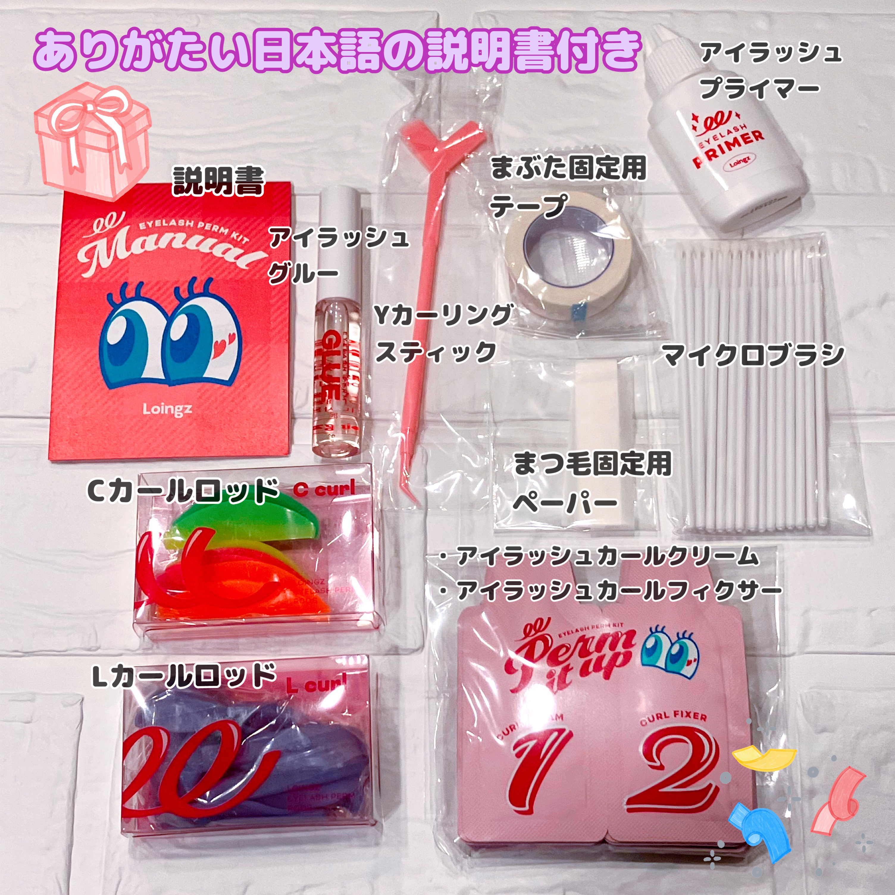 自宅でまつ毛パーマが出来るよ✨️ 必要な物が全て揃っていて、日本語の説明書付き。 CカールとLカールの選べるロッドにサイズも豊富🫶 翌日もしっかりカールしていて嬉しいです🙌