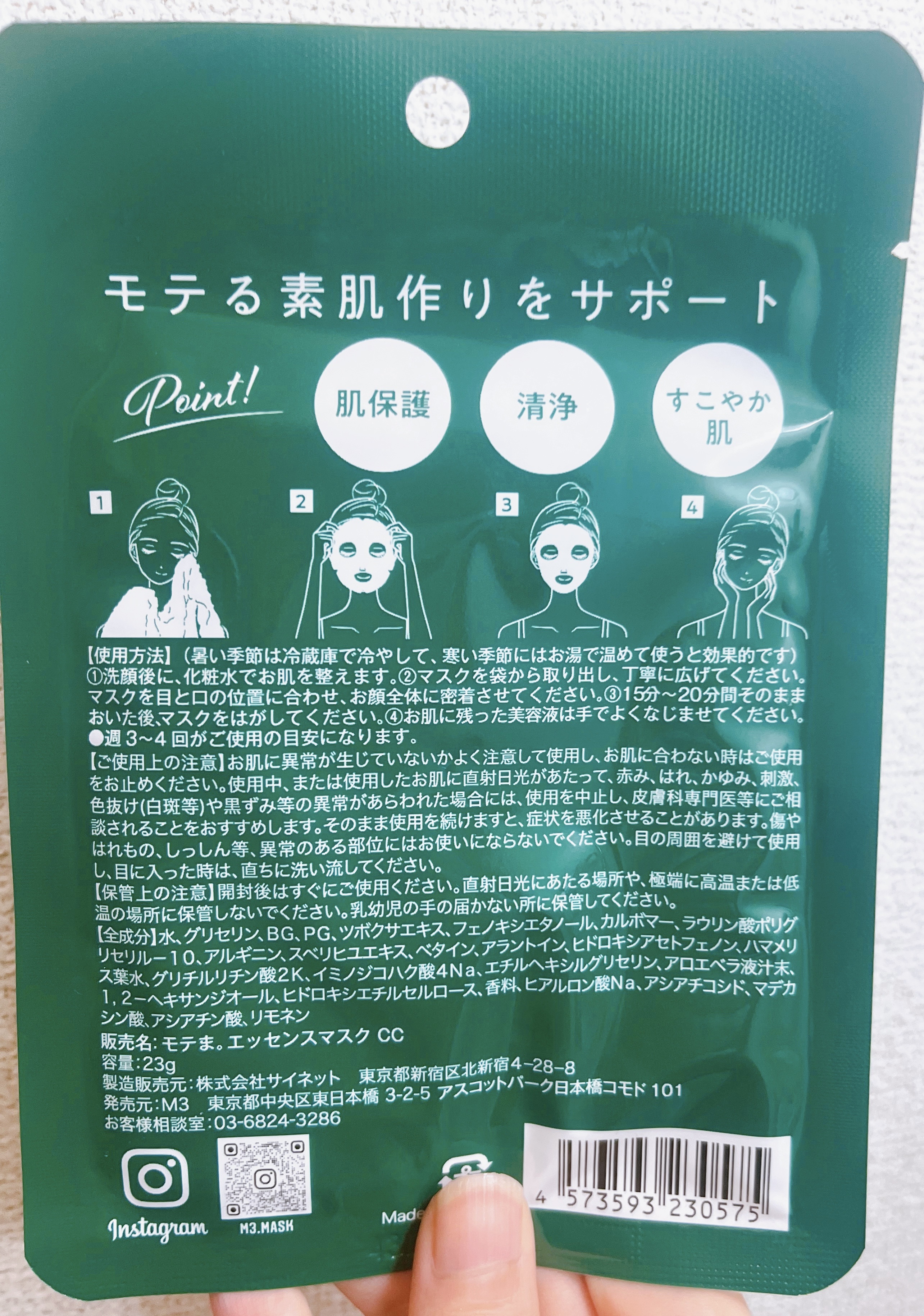 チャコール(炭)成分配合で肌のキメを整える🌟 植物エキスではしっかりと保湿してくれます🤩 ちょうど良い厚さのシート! テクスチャーはトロッとして美容液もちゃんとヒタヒタ💓 保湿はしっかりとされましたが、使用中にかなり沁みました😢 肌のキメもそんな変化がない気がする…。