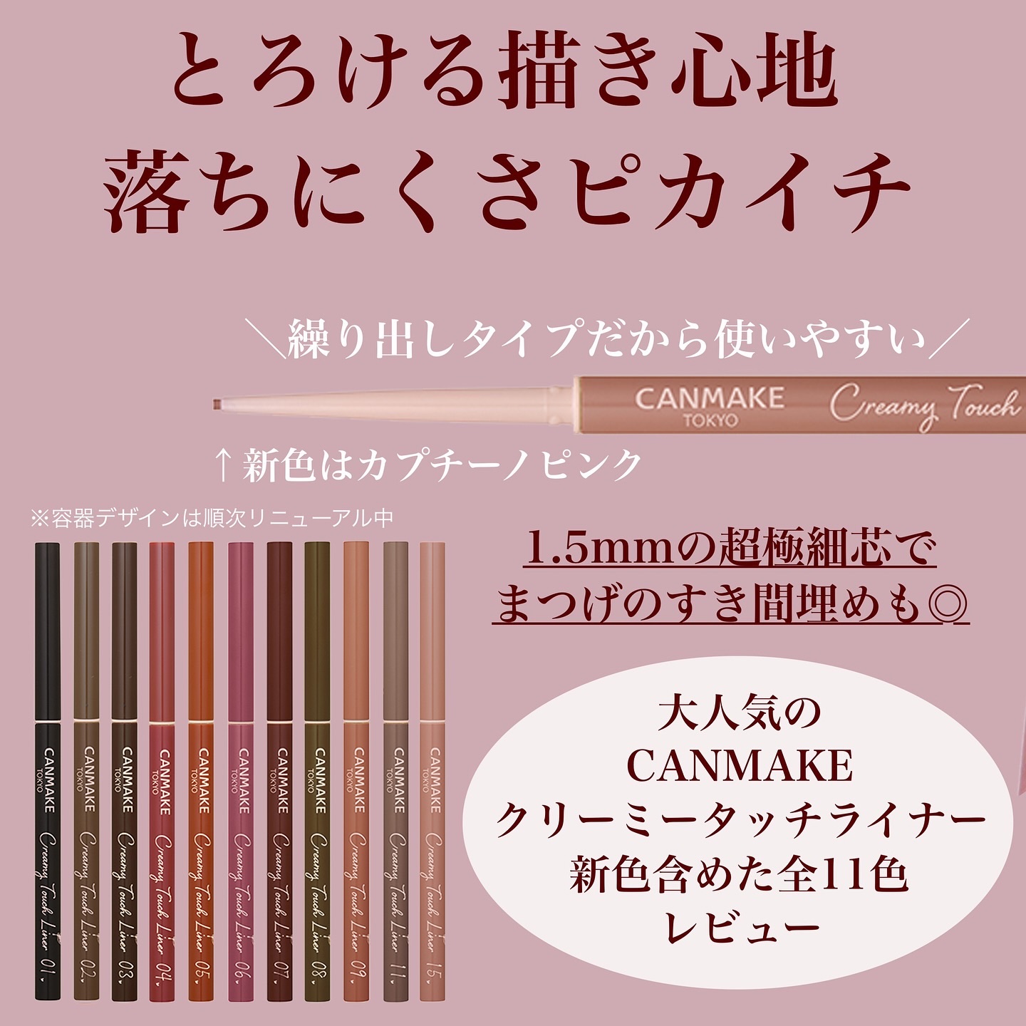 クリーミータッチライナーから涙袋や目尻にもマルチに使える色素薄めな やわらかピンクブラウンカラーが追加👏🏻 この15番はニュートラルで柔らかい まろやかピンクブラウンカラーで 普通のアイライナーとしてはもちろん、 涙袋の影や目尻延長ラインにもおすすめ! これは絶対人気出る…🥹