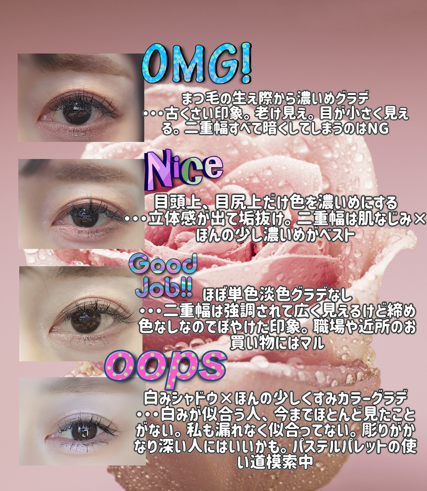 印象をがらりとかえられるメイクのひとつ、アイメイクの中でも三角ゾーンを意識することで目元の印象だけでなく顔の印象までかえてくれるから良くも悪くも革命的ポイント!! 綺麗な三角ゾーンをみつけると食い入るように見てしまう私のような女もいるので、皆さん三角ゾーン気にしてみてね♡